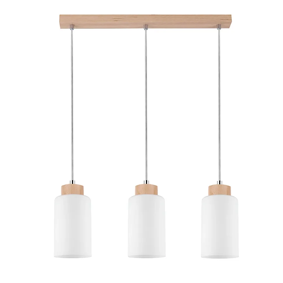 Pour une solution d’éclairage plus dynamique, la Suspension Bosco dans sa version trois points est un choix exceptionnel. Dotée de trois abat-jour en verre blanc laiteux, cette configuration offre un éclairage bien équilibré tout en conservant un look élégant et contemporain. Les éléments en bois de bouleau et le câble en PVC transparent garantissent que la lampe s’intègre parfaitement dans différents styles d’intérieur, du moderne au transitionnel. Cette option polyvalente est idéale pour les grands espaces tels que les salles à manger ou les salons, où elle servira à la fois de source de lumière fonctionnelle et de point focal élégant.