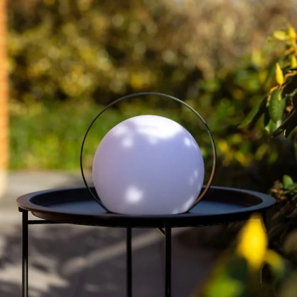 Nos boules LED Asta peuvent être rechargées par USB ou par cellules solaires.Bon à savoir :-Se rechargent par USB ou par cellules solaires en plein soleil pendant 6 à 8 heures.-Émettent une lumière blanche chaude. S’allume automatiquement à la tombée de la nuit pendant 6 à 8 heures après une charge complète.-Résiste à des températures comprises entre -14 et 35 degrés.-Télécommande disponible en option.-En cas de faible ensoleillement, par exemple en automne, vous pouvez recharger vos boules LED via le câble USB fourni.Les boules Asta créent une ambiance lumineuse chaleureuse dans votre jardin, sur votre balcon, votre terrasse ou partout où vous le souhaitez.Spécifications :-Référence : 22024-Indice de protection : IP44-Température de couleur : 2800-3200 Kelvin-Diamètre : 20 cm-Autonomie : 4 à 8 heures-Puissance : 1 W / 5 V-Télécommande : oui-Temps de charge : 4 à 8 heures-Alimentation : Secteur/Cellule solaire