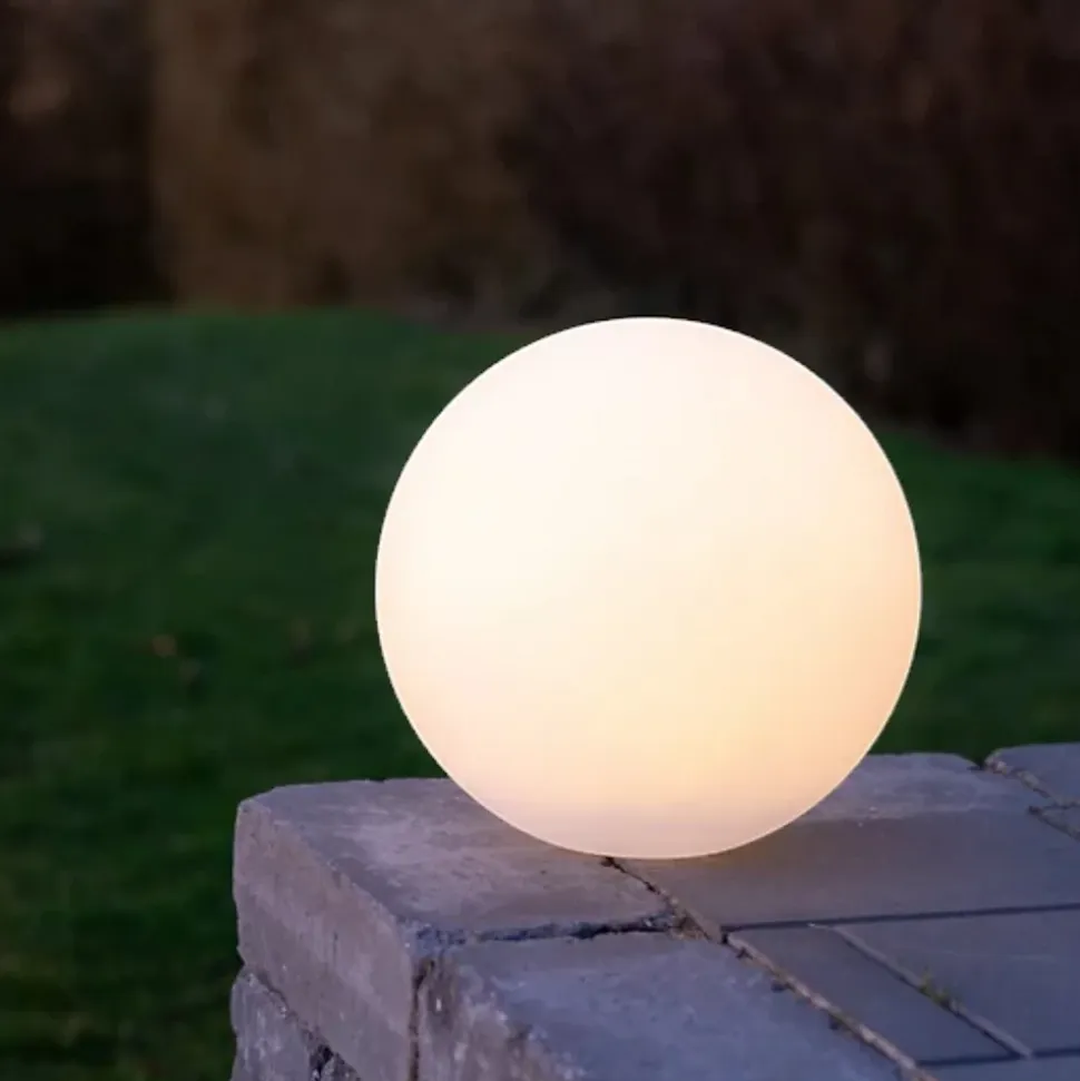 Ces élégantes boules lumineuses LED Mia s’intégreront parfaitement à tous les jardins et balcons.Bon à savoir-Les boules diffusent une lumière blanc chaud.-Elles se rechargent sur secteur en 4 à 8 heures ou au soleil en 8 heures.-Autonomie de 4 à 8 heures après une charge complète.-Elles peuvent également être utilisées à l’intérieur, au sol ou dans d’autres pièces.-La luminosité est réglable grâce à une télécommande (vendue séparément).-Les boules Mia sont ainsi parfaites pour vos garden-parties et réunions entre amis ou en famille, où elles créeront une ambiance magique.Spécifications :-Référence : 22013-Indice de protection : IP44 (résistant à la pluie fine)-Température de couleur : 2800-3200 Kelvins-Diamètre : 40 cm-Source lumineuse : LED-Autonomie de la batterie : 4-8 h-Puissance : 1 W / 5 V-Télécommande : Oui (à commander séparément)-Temps de charge : 4-8 h
