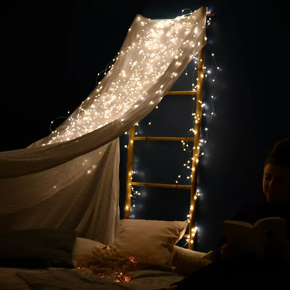 Cette cascade lumineuse de 48 descentes invite au rêve, à la détente. Idéale en DIY, vous pourrez la tresser ou la mélanger à des voilages pour un ciel de lit étoilé. • Couleur de la lumière : Ivoire• Dimensions : H 1.4m• Nombre de LED : 720• Luminosité : 1296 lumens• Puissance : transformateur 230V/12V• Alimentation : Filaire• Couleur du câble : transparent• Matière : Produit en PVC souple• Garantie : 2 ansUsage et installation : Cette jolie cascade trouvera sa place aussi bien en tombant sur votre canapé ou sur votre salon de jardin.Données techniques et dimensions : L’indice IP44 permettra une résistance à toutes les météos tout au long de l’année. Simple d’utilisation, il vous suffit de la brancher à une prise secteur. Cascade basse tension vous permettant d’illuminer en toute sécurité. Pitons de fixation fournis.Source lumineuse : Cette cascade est composée de microLED nouvelle génération trois fois plus lumineuse qu’une LED classique.