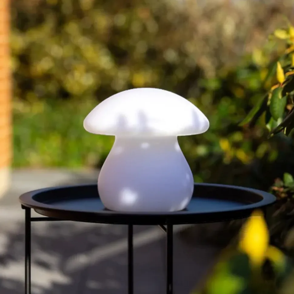 Notre lampe champignon est équipée d’un chargeur et de cellules solaires. Ainsi, elle se recharge grâce aux rayons du soleil.Bon à savoir-Si le soleil ne brille pas suffisamment, par exemple en hiver, vous pouvez la recharger via le câble USB fourni.-Autonomie de 4 à 8 heures après une charge complète.-Se recharge en 4 à 8 heures par USB ou en plein soleil.-Luminosité réglable par télécommande (vendue séparément).-La lampe diffuse une agréable lumière blanche chaude, créant une ambiance chaleureuse dans le jardin, sur le balcon, la terrasse ou tout autre endroit de votre choix. Spécifications :-Référence : 23102-Hauteur : 23 cm-Indice de protection : IP44 (résistant à la pluie fine)-Température de couleur : 2800-3200 Kelvin-Diamètre : 23 cm-Source lumineuse : LED-Autonomie de la batterie : 4-8 h-Puissance : 1 W / 5 V-Télécommande : Oui (vendue séparément)-Temps de charge : 4-8 h-Source : Prise secteur et cellule solaire