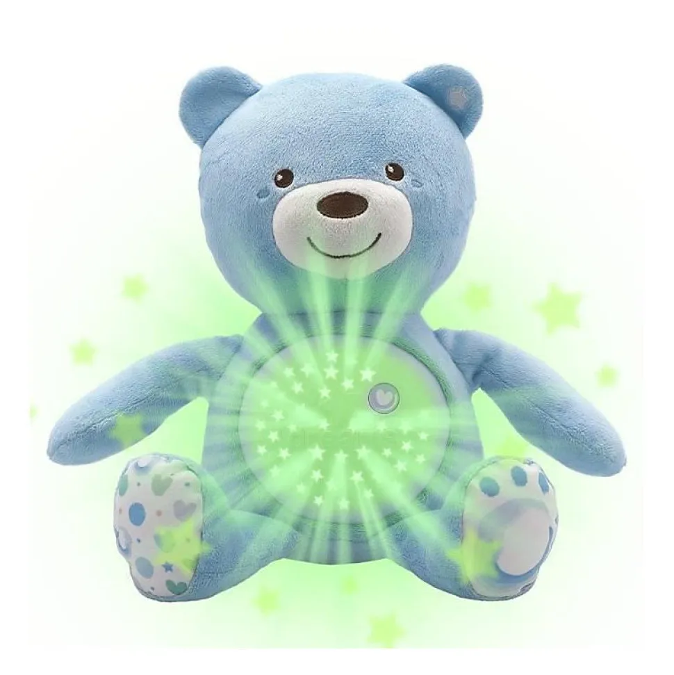 CHICCO Peluche musicale et lumineuse en velours extra doux – Effet veilleuse et projection d’