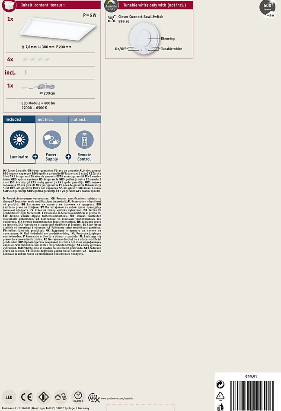 Le panneau Flad Blanc dépoli s’installe sous un élément suspendu, il fournit un éclairage étendu. Clever Connect est un système d’éclairage personnalisé de meubles. Installez les luminaires, le driver et les accessoires en toute simplicité et selon vos préférences. La fonction Tunable White allie « travail » et « bien-être » sous la forme d’ambiance lumineuse. Longueur illimitée de câble pour étendre le système en toute liberté.