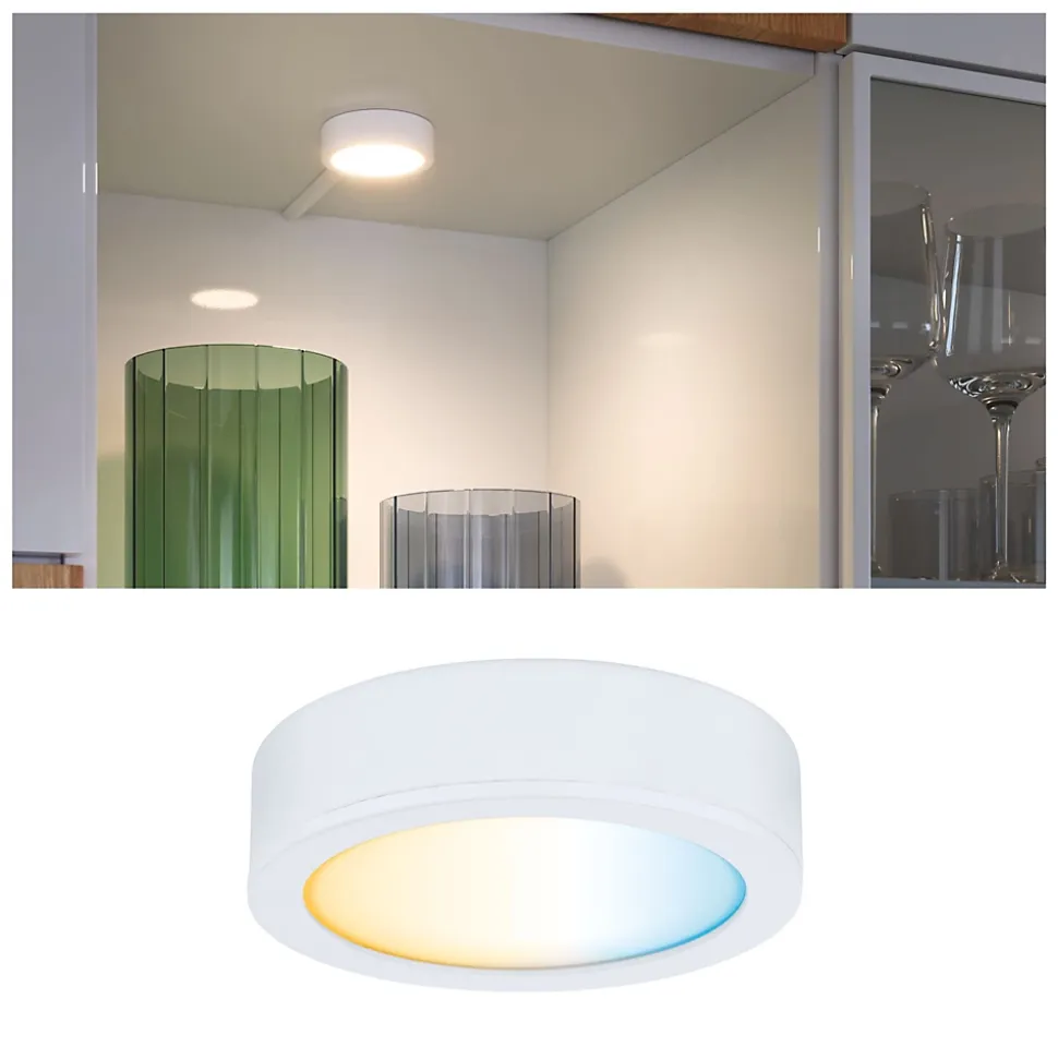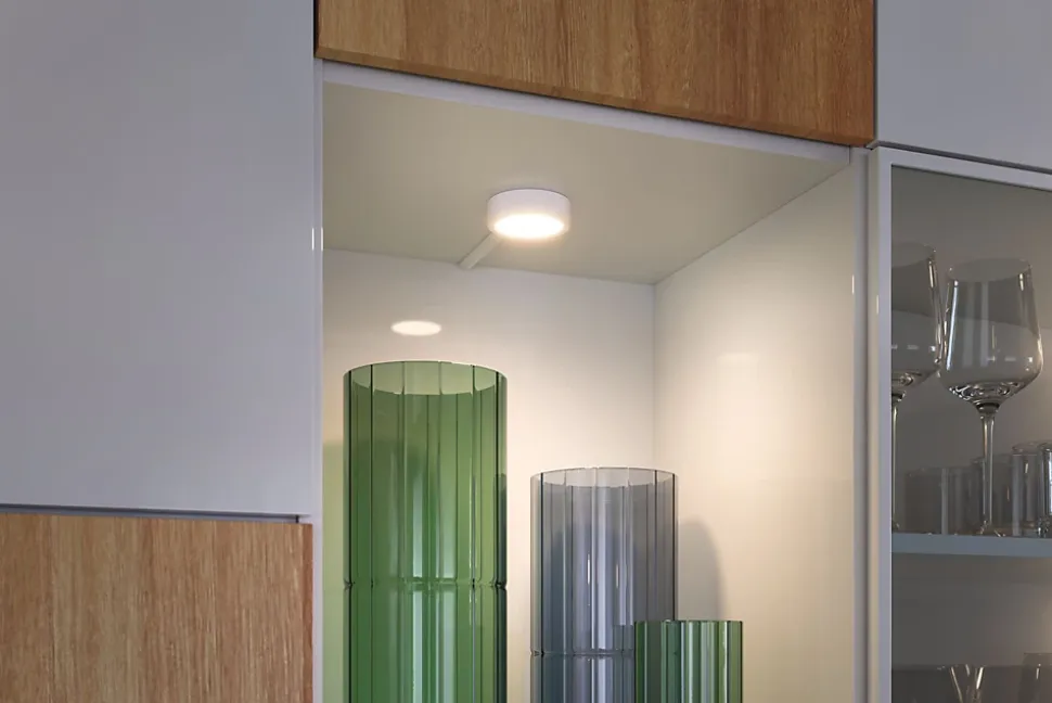 Installez le spot Disc Blanc dépoli dans une armoire afin qu’il en éclaire le contenu. Clever Connect est un système d’éclairage personnalisé de meubles. Installez les luminaires, le driver et les accessoires en toute simplicité et selon vos préférences. La fonction Tunable White allie « travail » et « bien-être » sous la forme d’ambiance lumineuse. Longueur illimitée de câble pour étendre le système en toute liberté.