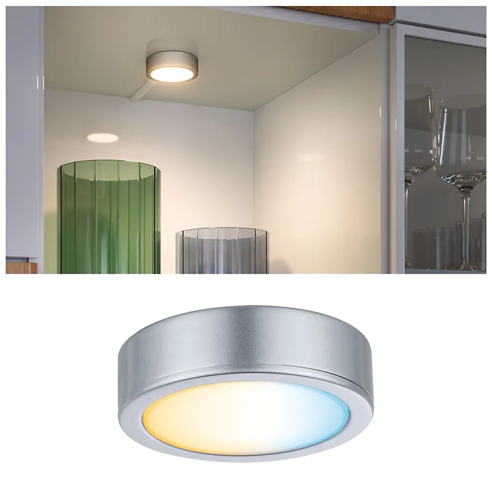 Installez le spot Disc Chrome mat dans une armoire afin qu’il en éclaire le contenu. Clever Connect est un système d’éclairage personnalisé de meubles. Installez les luminaires, le driver et les accessoires en toute simplicité et selon vos préférences. La fonction Tunable White allie « travail » et « bien-être » sous la forme d’ambiance lumineuse. Longueur illimitée de câble pour étendre le système en toute liberté.