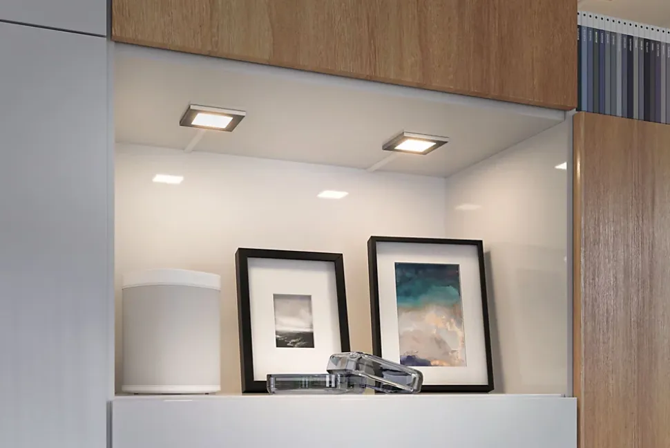 Installez le spot Pola Chrome mat dans une armoire afin qu’il en éclaire le contenu. Clever Connect est un système d’éclairage personnalisé de meubles. Installez les luminaires, le driver et les accessoires en toute simplicité et selon vos préférences. La fonction Tunable White allie « travail » et « bien-être » sous la forme d’ambiance lumineuse. Longueur illimitée de câble pour étendre le système en toute liberté.