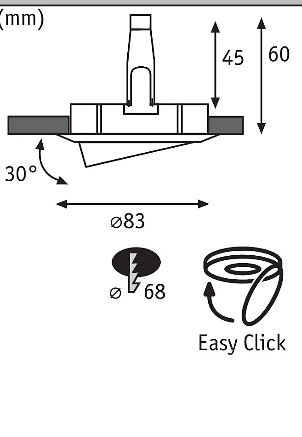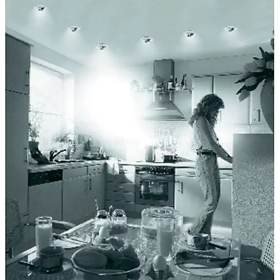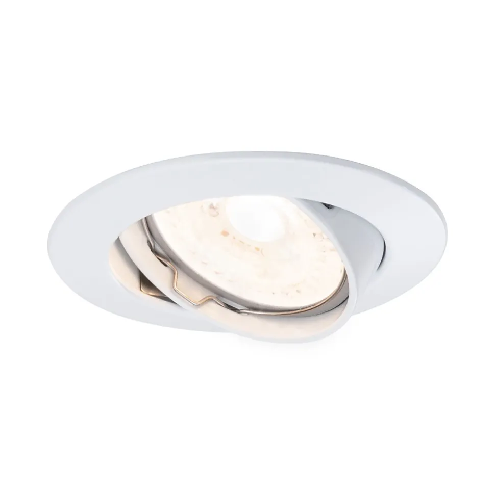 Collerette encastrable Paulmann en aluminium blanc, conçue pour ampoules halogènes GU5.3 MR16 12 V jusqu’à 50 W. Son design pivotable (30°) et son verre transparent offrent une direction de lumière précise et un rendu net, tandis que sa faible profondeur d’encastrement facilite l’intégration dans les plafonds standards. Classe de protection III pour une installation basse tension sécurisée.