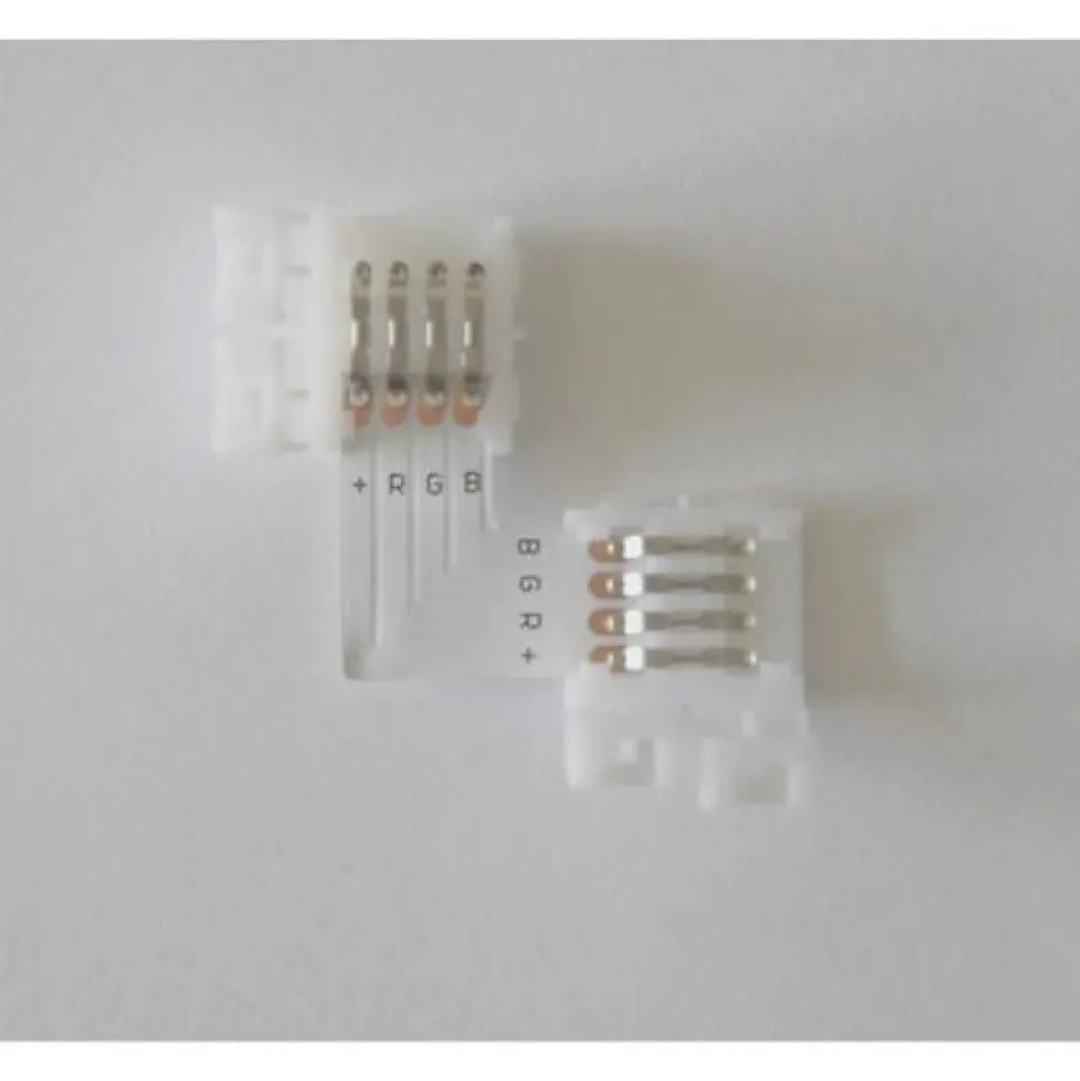 Connecteur pour Ruban LED RGB 12V en L, son angle sera parfait pour ajouter de la longueur entre deux rubans LED RGB si vous souhaitez faire une découpe de votre ruban.
