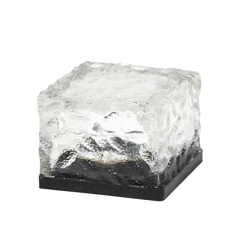 Cube de glace solaire GALIX G4470 avec LED blanche en verre élégant. Fonctionne à l’énergie solaire avec fonctionnement jusqu’à 6h. Interrupteur on/off inclus pour un usage facile. Design moderne pour décorer jardins et terrasses.