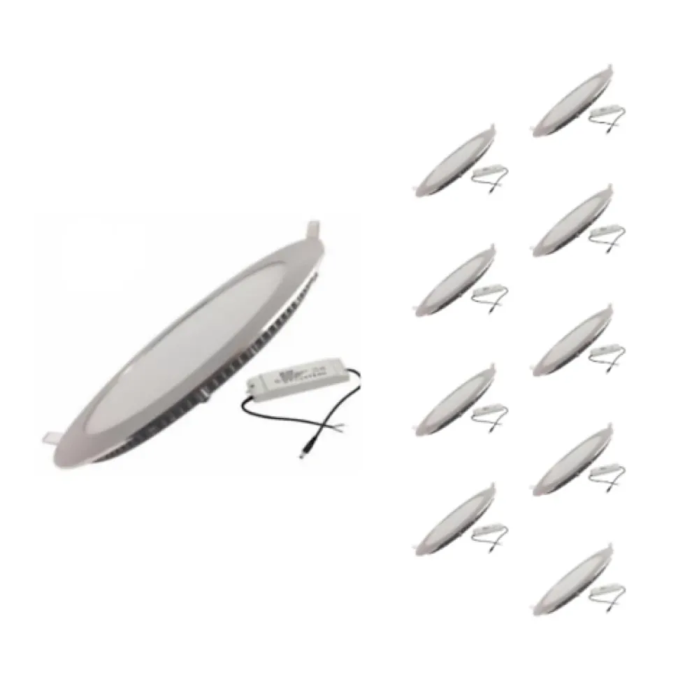 Embellissez votre intérieur avec ce Spot LED Encastrable Extra Plat Rond 18W ALU (Pack de 10). Il allie praticité, élégance et performance. Caractéristiques du Spot LED Encastrable Extra Plat Rond 18W ALU (Pack de 10) Un design élégantCe spot LED est extra plat, ce qui lui permet de se fondre facilement dans le décor. Son contour en aluminium apporte une touche moderne à votre aménagement. Il permet un gain d’espace considérable puisqu’il ne mesure que 225mm avec une épaisseur de 10mm, n’encombrant pas vos plafonds. Un éclairage parfaitIl est non seulement esthétique, mais ce spot apporte aussi un éclairage singulier. Avec une faible consommation de 18W, il émet un flux lumineux efficace de 1440 lumens sur un angle d’éclairage de 120°. Sa lumière est optimale dès son allumage, n’émet que peu de chaleur et n’éblouit pas les yeux. Installation et utilisationCe spot LED dispose d’un indice de protection IP44, il est recommandé de l’installer en intérieur ou dans un extérieur couvert. Ainsi, vous pouvez encastrer ce spot LED dans votre commerce, votre boutique ou dans votre salle à manger pour un éclairage simple et agréable.Ce spot LED encastrable extra plat rond vous permet d’obtenir un éclairage design, pratique et discret. Le transformateur est IP20. Celui-ci étant encastré dans le faux-plafond, l’IP indiqué est celui du produit, qui est IP44.