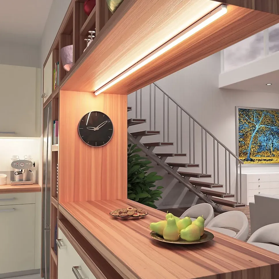 LED SMD: performances et économie d’énergie. 800 lumens pour seulement 10w de consommation! Lumière blanche naturelle 4000K: ni chaude ni froide; diffuseur anti-éblouissant: lumière diffuse et homogène sans ombres. Accessoires inclus (câble d’alimentation 150cm, connecteur 15cm, kit d’installation); avec interrupteur marche / arrêt. Longueur: 87,3 cm – Prolongeable en série jusqu’à 100w max; IP20: usage interne uniquement; excellent remplacement pour l’ancienne réglette néon T5. Structure en polycarbonate: sûre et robuste; produit certifié.