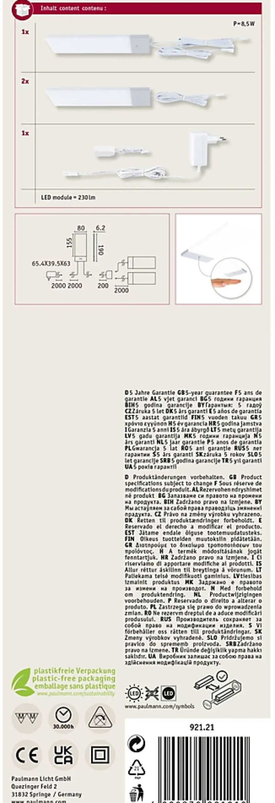 Température de couleur: 3000K – Blanc chaud|Les éclairages de meubles puissants combinent éclairage parfait et design élégant|Les matériaux des luminaires sont nettoyables|Le raccordement est facile et rapide. Il se fait directement au réseau 230 V avec un transfo-prise.|Le détecteur de proximité permet d’allumer et éteindre le luminaire sans contact|Crée des touches lumineuses décoratives dans la pièce