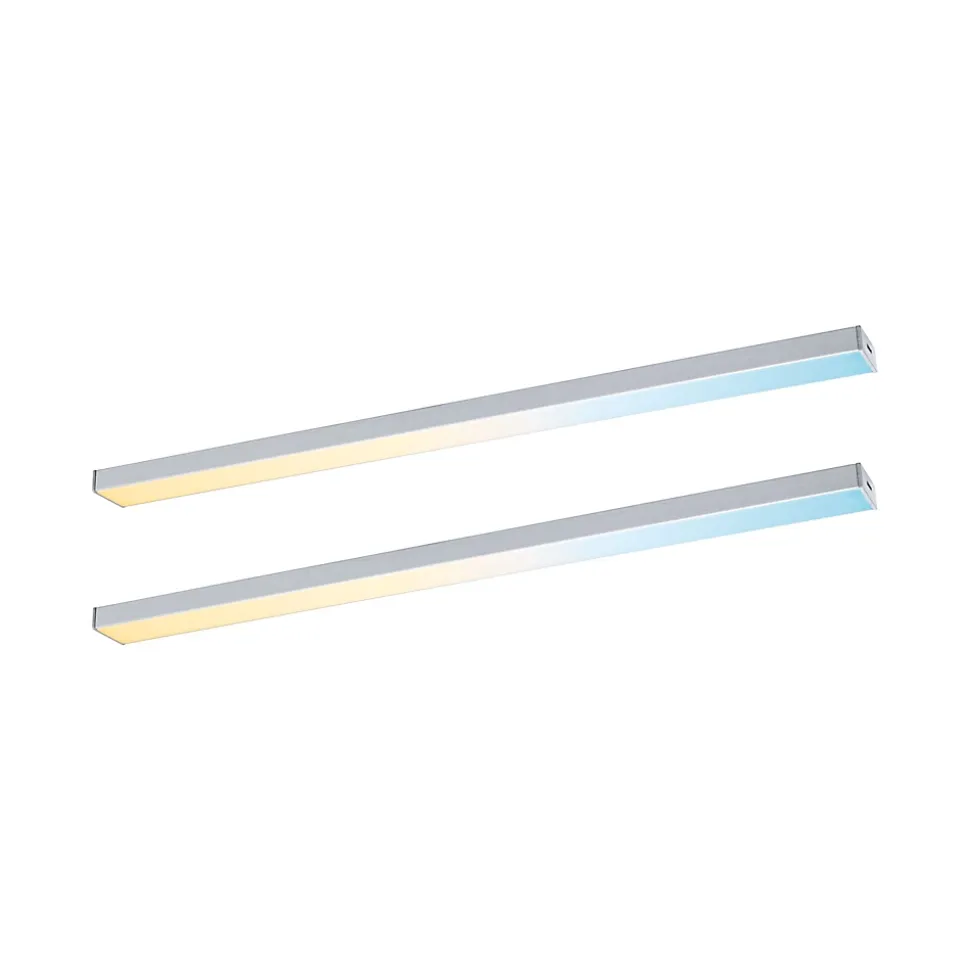 Le kit d’extension comprenant deux éclairages de meubles Inline en Chrome mat discret et de longueur 350x26mm est le complément parfait du kit de démarrage Inline. Ces luminaires sont une solution élégante pour illuminer les plans de travail de manière optimale. Les matériaux de haute qualité faciles à nettoyer font de l’entretien du dispositif un jeu d’enfants. Le détecteur de proximité permet une mise en marche et un arrêt sans contact, ce qui contribue en outre à un mode de travail hygiénique. La fonction Tunable White permet d’adapter l’éclairage aux besoins individuels – qu’il s’agisse de se concentrer ou de se détendre dans une atmosphère agréable. La fonction mémoire qui enregistre la température de couleur paramétrée est un plus.