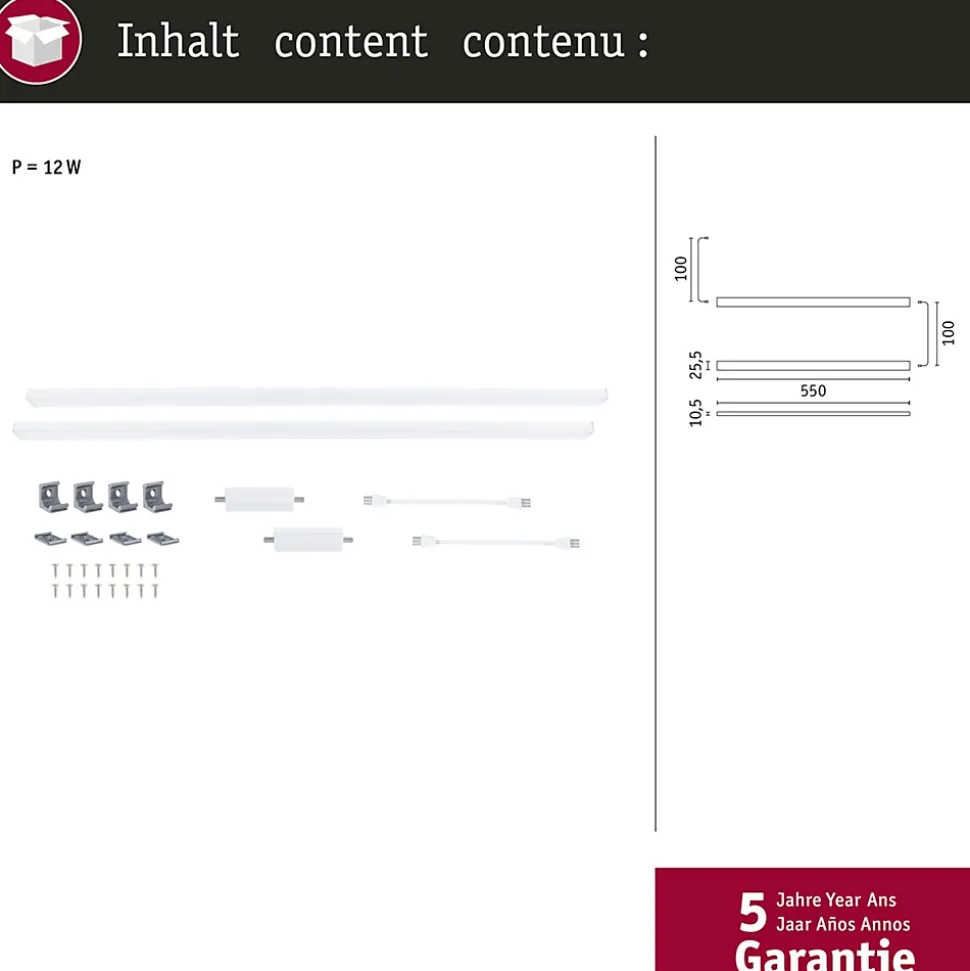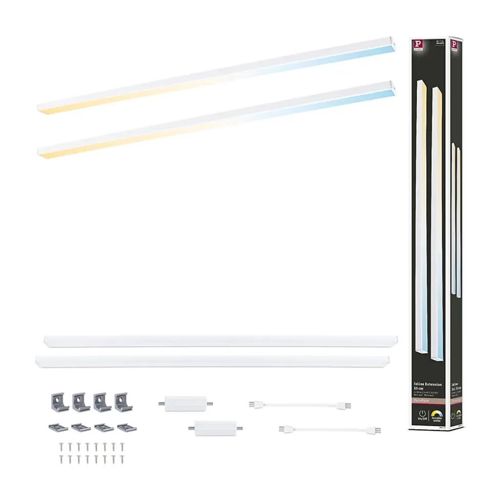 Le kit d’extension comprenant deux éclairages de meubles Inline en Blanc dépoli discret et de longueur 550x26mm est le complément parfait du kit de démarrage Inline. Ces luminaires sont une solution élégante pour illuminer les plans de travail de manière optimale. Les matériaux de haute qualité faciles à nettoyer font de l’entretien du dispositif un jeu d’enfants. Le détecteur de proximité permet une mise en marche et un arrêt sans contact, ce qui contribue en outre à un mode de travail hygiénique. La fonction Tunable White permet d’adapter l’éclairage aux besoins individuels – qu’il s’agisse de se concentrer ou de se détendre dans une atmosphère agréable. La fonction mémoire qui enregistre la température de couleur paramétrée est un plus.