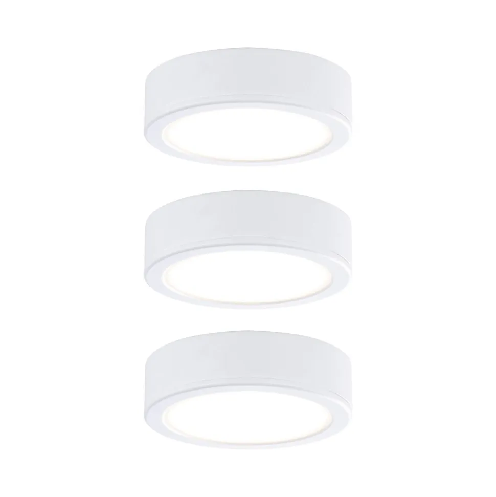 Les éclairages de meubles blanc en kit de 3 éclairent sous les armoires, les étagères et les vitrines. Ils garantissent une bonne vue d’ensemble ou mettent les objets de collection en valeur. Les lampes peuvent être fixées à l’aide de vis dans la position souhaitée ou tout simplement collées, les câbles peuvent être disposés à l’arrière du meuble.