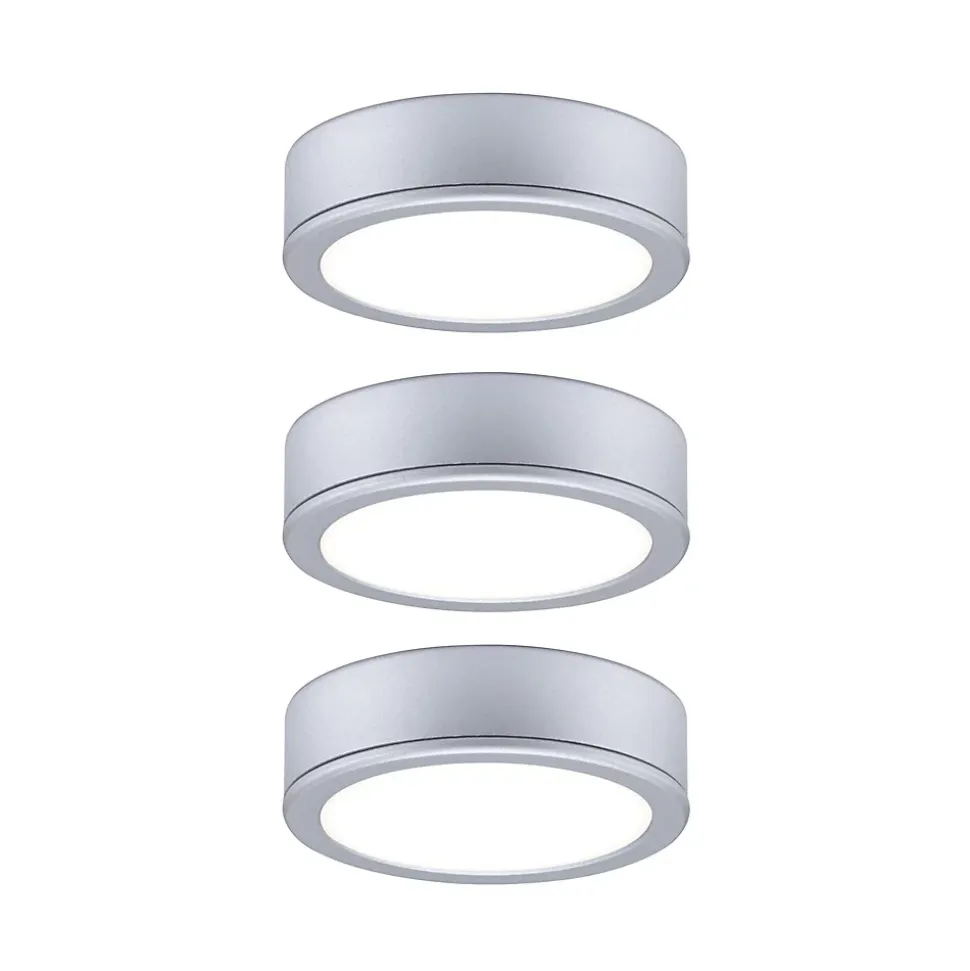 Les éclairages de meubles chromé en kit de 3 éclairent sous les armoires, les étagères et les vitrines. Ils garantissent une bonne vue d’ensemble ou mettent les objets de collection en valeur. Les lampes peuvent être fixées à l’aide de vis dans la position souhaitée ou tout simplement collées, les câbles peuvent être disposés à l’arrière du meuble.