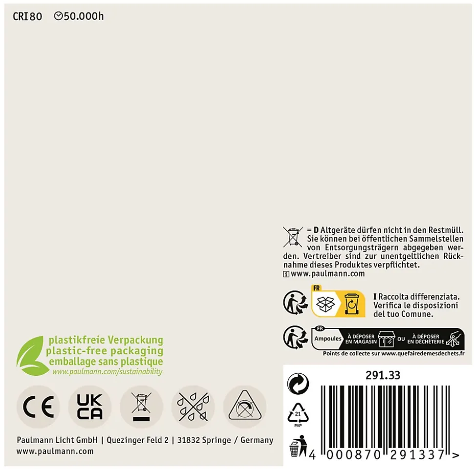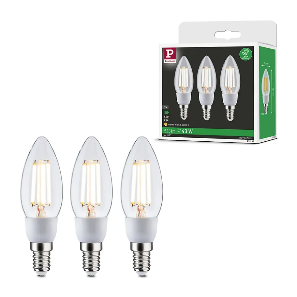 Les ampoules ultra efficaces de l’Eco-Line combinent innovation et durabilité. Grâce à une consommation d’énergie réduite de 60 % et à une durée de vie résolument plus longue que celle des ampoules LED standard, il est possible de réduire considérablement les coûts énergétiques tout en préservant l’environnement. Les ampoules en forme de bougie (lot de 3) avec 3000K, une puissance de 3×2,5W et 3x525lm diffusent un éclairage uniforme agréable sans teinte verdâtre. Avec leur forme fine, les flammes conviennent particulièrement bien aux lustres, appliques et plafonniers et diffusent une lumière harmonieuse propice au bien-être dans la maison. L’ampoule est compatible avec les douilles E14 conventionnelles. Le pack multiple a cela de pratique qu’il permet d’équiper directement plusieurs luminaires pour illuminer une pièce entière. Les lampes LED Paulmann portant le label Eye friendly produisent une lumière confortable qui préserve les yeux. Que ce soit pour travailler, lire ou se détendre, les lampes contribuent à un meilleur confort visuel.