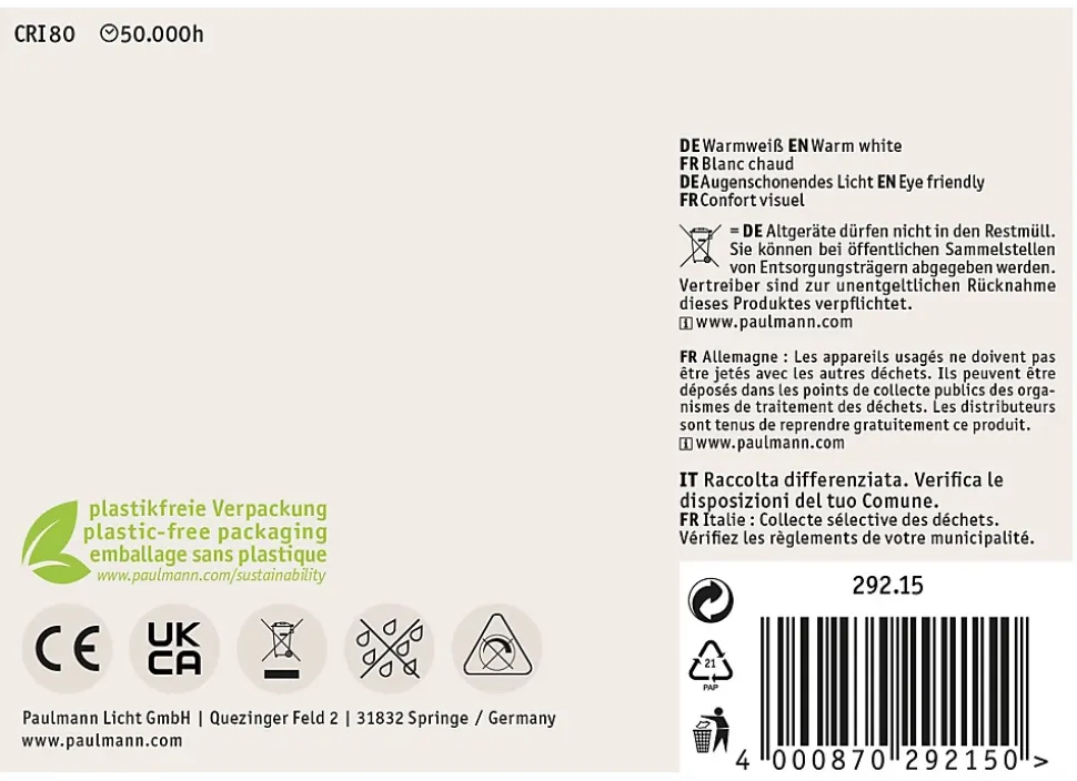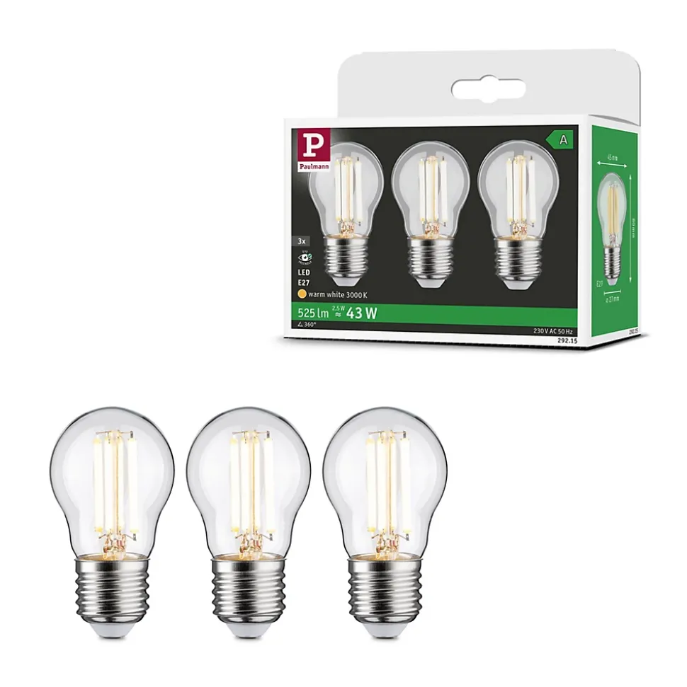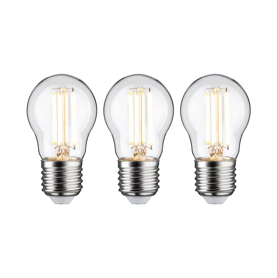Les ampoules LED ultra efficaces de la gamme Eco-Line allient technologie innovante et durabilité pour un éclairage efficace et stylé. Grâce à une consommation d’énergie réduite de 60 % et à une durée de vie résolument plus longue que celle des ampoules LED standard, il est possible de réduire considérablement les coûts énergétiques tout en préservant l’environnement. Les ampoules sphériques à filament claires s’adaptent à toutes les douilles E27 courantes et produit, avec 3000 K, une puissance de 3×2,5 W et 3×525 lm, une lumière blanc chaud agréable sans teinte verte. Ainsi, les ampoules en forme de bulbe apportent à chaque pièce une ambiance de bien-être harmonieuse. Grâce à leur forme compacte, les ampoules sphériques sont idéales pour les petits luminaires. Le pack multiple a cela de pratique qu’il permet d’équiper directement plusieurs luminaires pour illuminer une pièce entière. Les ampoules LED Paulmann portant le label Eye friendly produisent une lumière confortable qui préserve les yeux. Que ce soit pour travailler, lire ou se détendre, les ampoules contribuent à un meilleur confort visuel.
