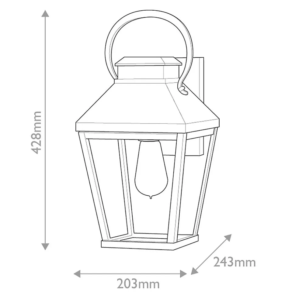 Elstead Hinkley Dawson Lanterne murale d’extérieur traditionnelle noire, accent bronze bruni IP44 1x E27Finition : Noir avec accents bronze bruniMatériau : Aluminium, verre biseauté transparentIndice de protection : IP44Hauteur : 42,8 cmLargeur : 20,3 cmProjection : 24,3 cmType d’ampoule : E27Nombre d’ampoules : 1Ampoule incluse : NonIntensité variable : Oui – Ampoules à intensité variable requisesPoids : 3 kgPuissance (max.) : 60 W