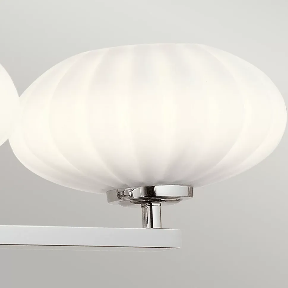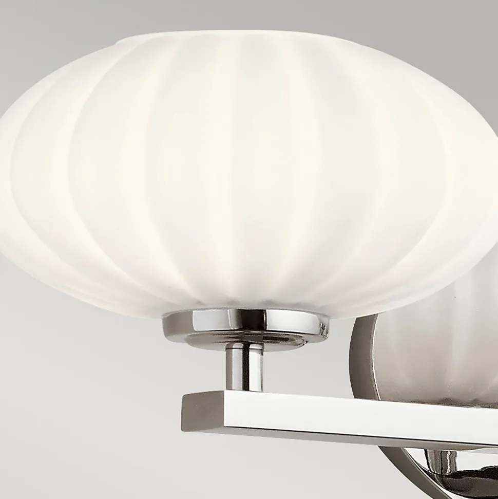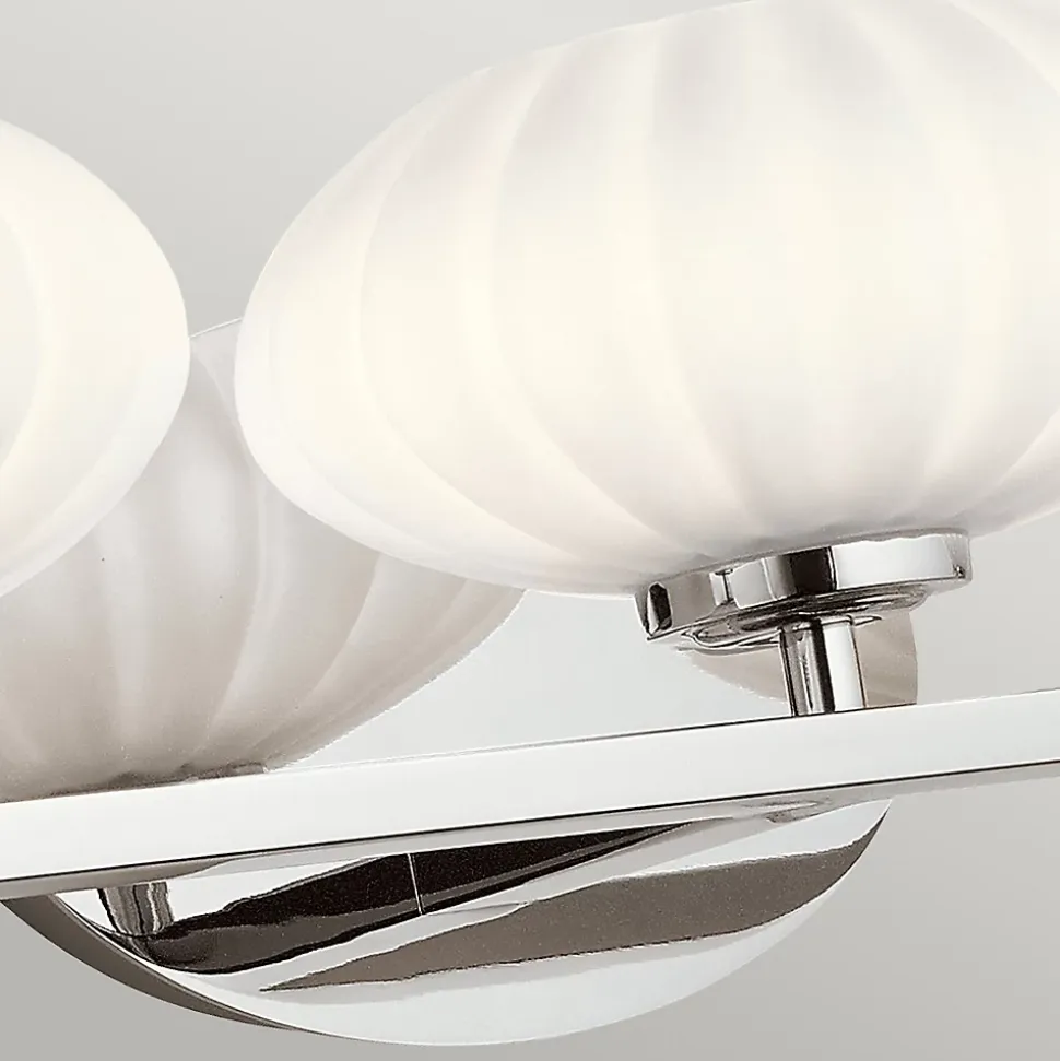Quintiesse Kichler Pim Lampe Murale de Salle de Bain Matériel: Acier, Verre Opaline Gravé Satiné Indice de Protection: IP44 Hauteur: 15.4cm Largeur: 63.5cm Profondeur: 21.9cm Type de Lampe: G9 Nbr. de Lampes: 3 Ampoule Incluse: Oui Kelvin: 3000k Lumens: 900Lm Puissance (max): 3W