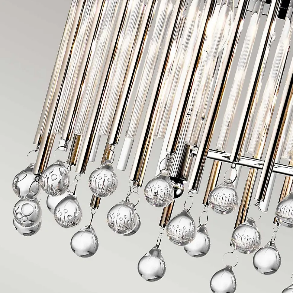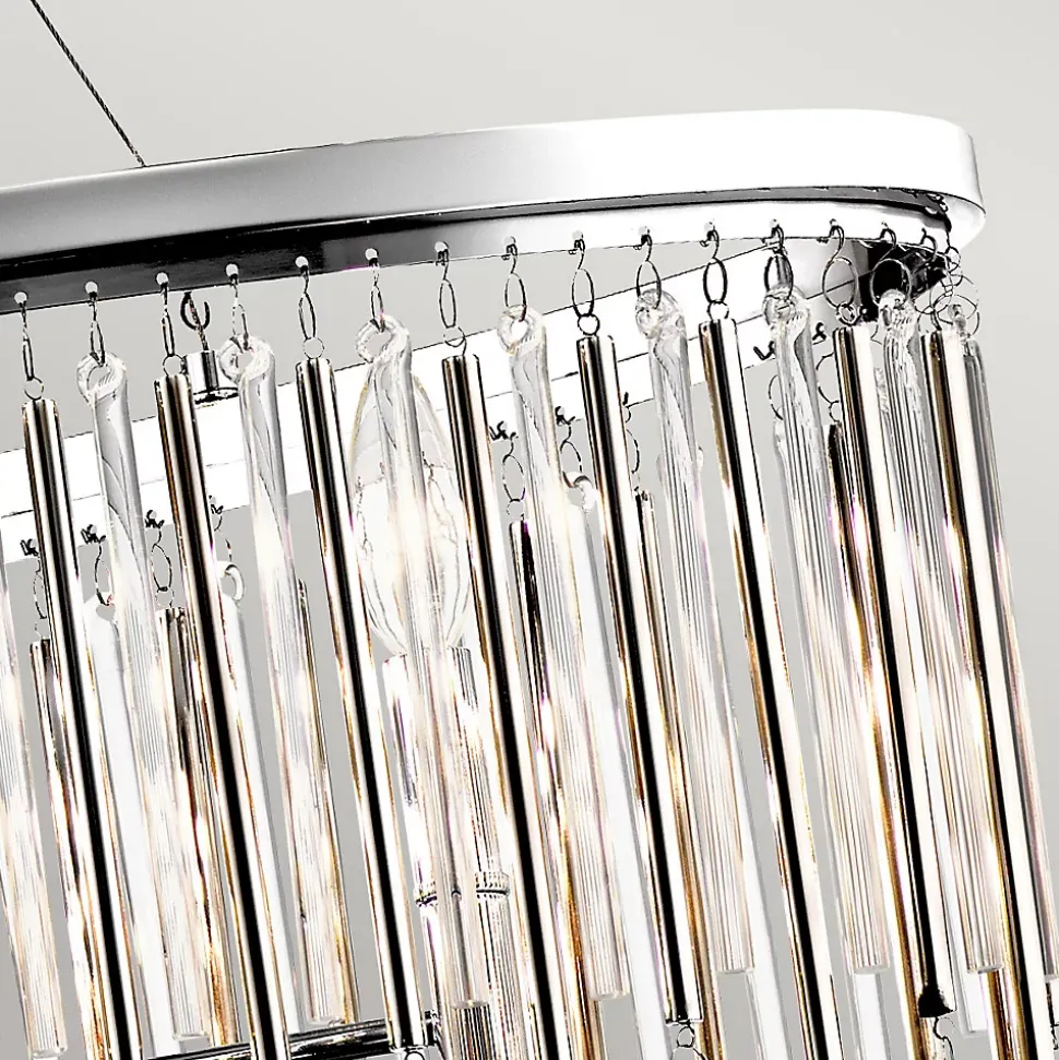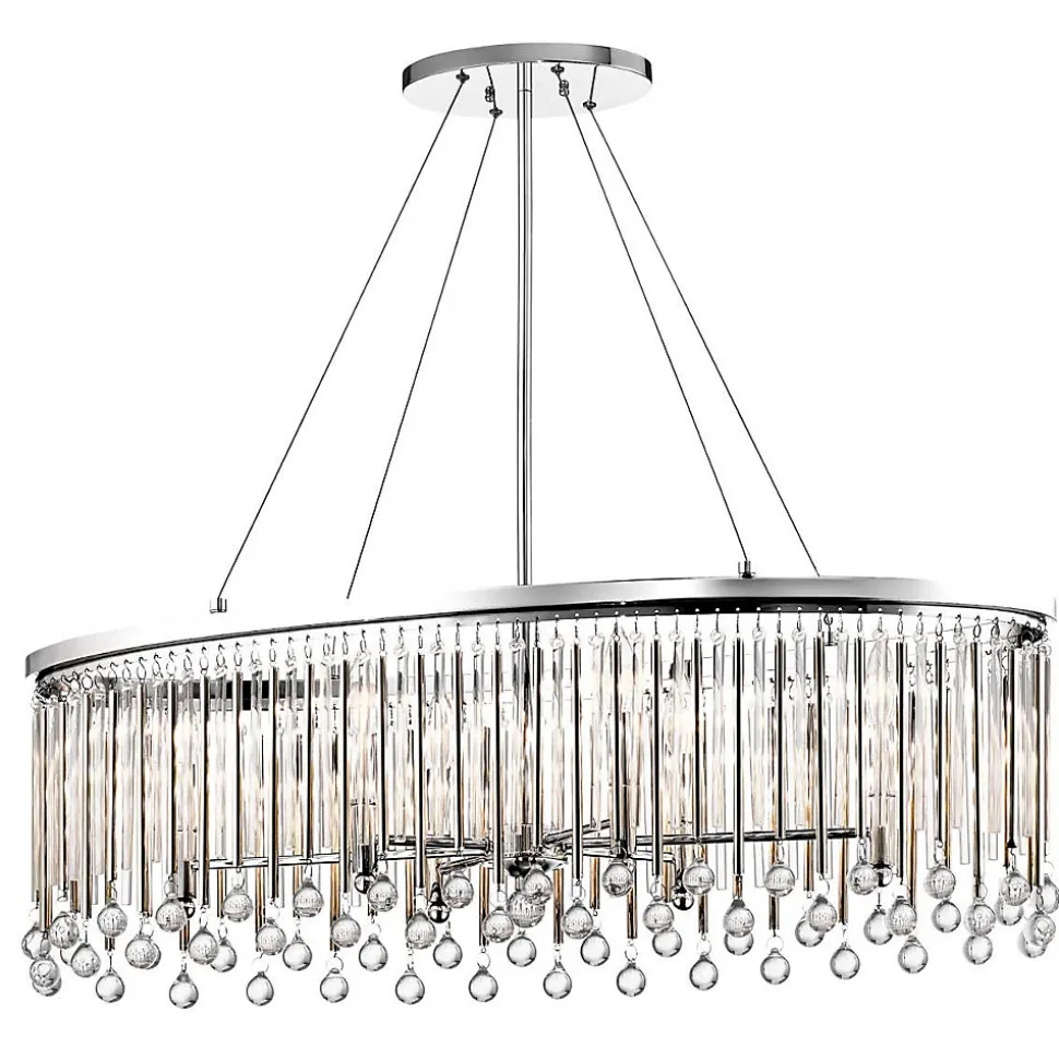Elstead Kichler Piper Suspension Plafonnier Chrome PoliFinition : Chrome poliMatériau : acier, cristalHauteur : 31,3 cmHauteur minimale : 44,8 cmHauteur maximale : 136,2 cmLargeur : 91,6 cmProfondeur : 34,3 cmDiamètre : 91,6 cmType de lampe : E14Nombre de lampes : 6Ampoule incluse : NonPuissance (max): 60W