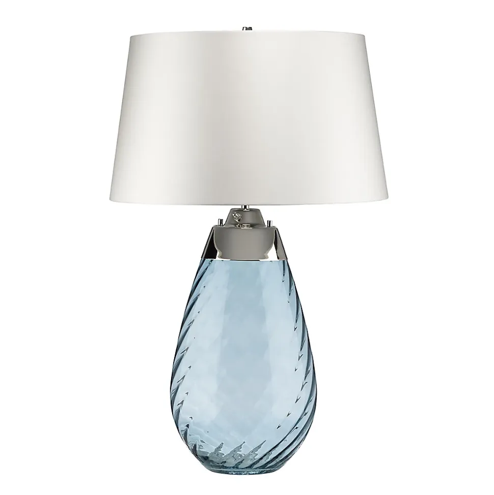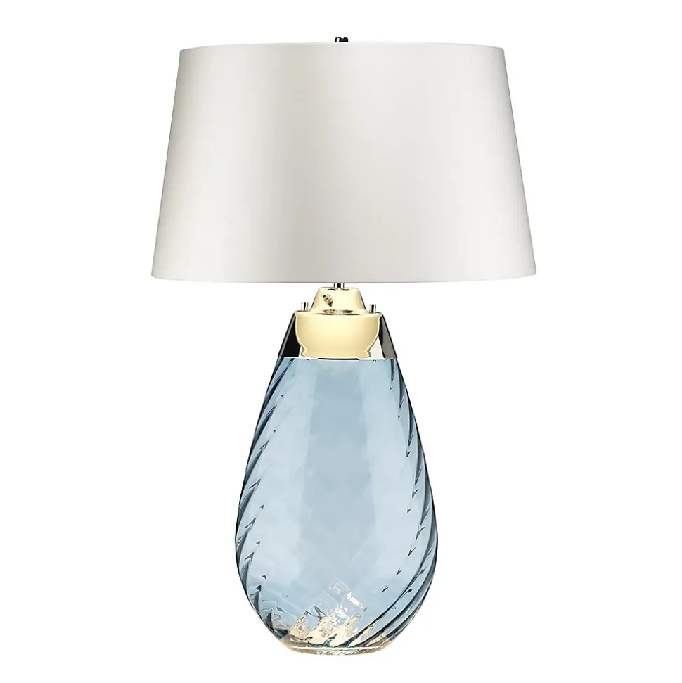 Elstead Lena – Grande lampe de table bleue à 2 ampoules avec abat-jour blanc cassé, verre teinté bleu, abat-jour blanc cassé, E27 | Fini: verre teinté bleu / abat-jour blanc cassé | Matériel: Verre | Matériel: Métal | Matériel: Satin lisse | Hauteur (cm): 74 | Diamètre (cm): 46 | Nombre de lumières: 1 | Type de lampe: E27 | Puissance (max): 60W | Ampoule incluse: GU10 LED | Kelvin: 3000k | Lumens: 620Lm