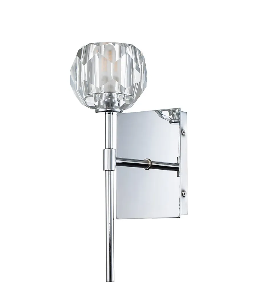 Elstead Quoizel Regalia Applique Chrome Poli, 3000K, IP44Finition : Chrome poliMatériau : acier, verre cristal K9Classement IP : IP44Hauteur : 34,6 cmLargeur : 12,2 cmProfondeur : 16,6 cmType de lampe : G9Nombre de lampes : 1Ampoule incluse : OuiKelvin : 3 000 kLumens : 300LmPuissance (max): 3W