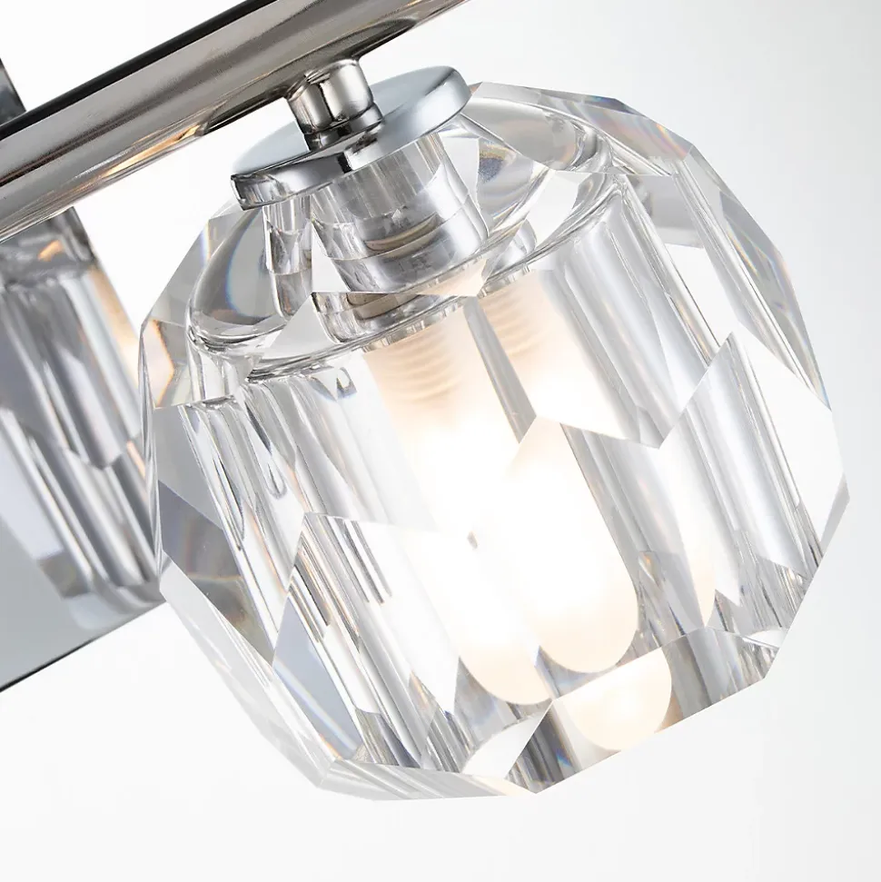 Elstead Quoizel Regalia Applique Chrome Poli, 3000K, IP44Finition : Chrome poliMatériau : acier, verre cristal K9Classement IP : IP44Hauteur : 15,2 cmLargeur : 33,4 cmProfondeur : 16,6 cmType de lampe : G9Nombre de lampes : 2Ampoule incluse : OuiKelvin : 3 000 kLumen : 600LmPuissance (max): 3W