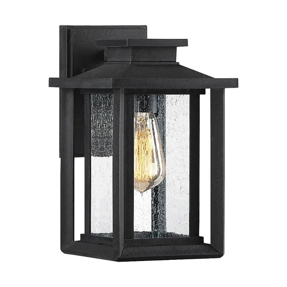 Elstead Quoizel Wakefield Lanterne murale d’extérieur Earth Black, IP44Finition : Terre noireMatériau : composite résistant aux intempéries, verre granuleux transparentClassement IP : IP44Hauteur : 28 cmLargeur : 17,1 cmProfondeur : 19,7 cmDiamètre : 17,1 cmType de lampe : E27Nombre de lampes : 1Ampoule incluse : NonPuissance (max): 60W
