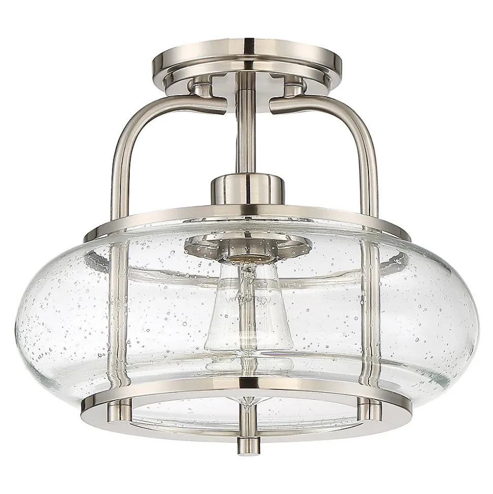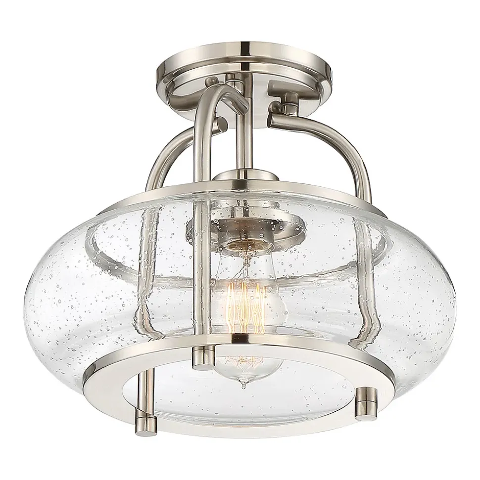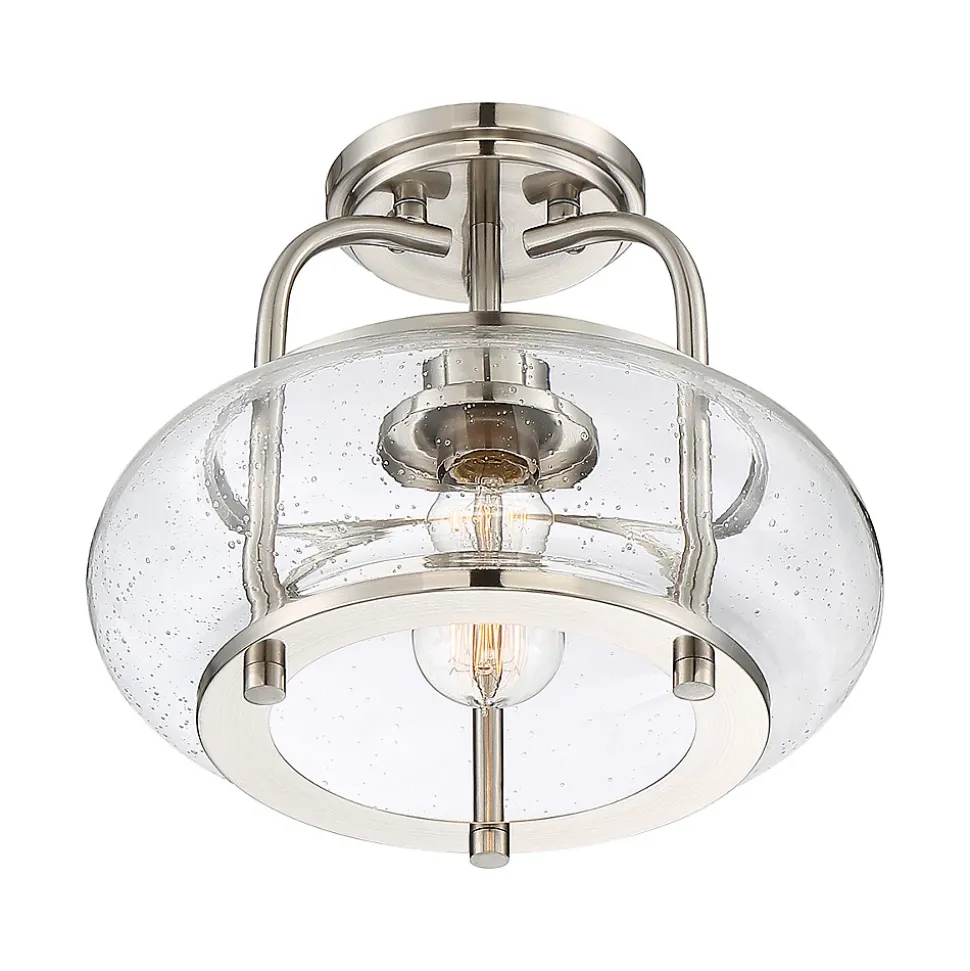 Semi-plafonnier Elstead Trilogy à 1 lumière, nickel brossé, E27 | Fini: Nickel brossé | Matériel: Métal | Matériau: verre semé | Hauteur (cm): 24,8 | Diamètre (cm): 3,5 | Nombre de lumières: 1 | Type de lampe: E27 | Puissance (max): 60W | Ampoule incluse: Oui | Poids (kg): 2.96