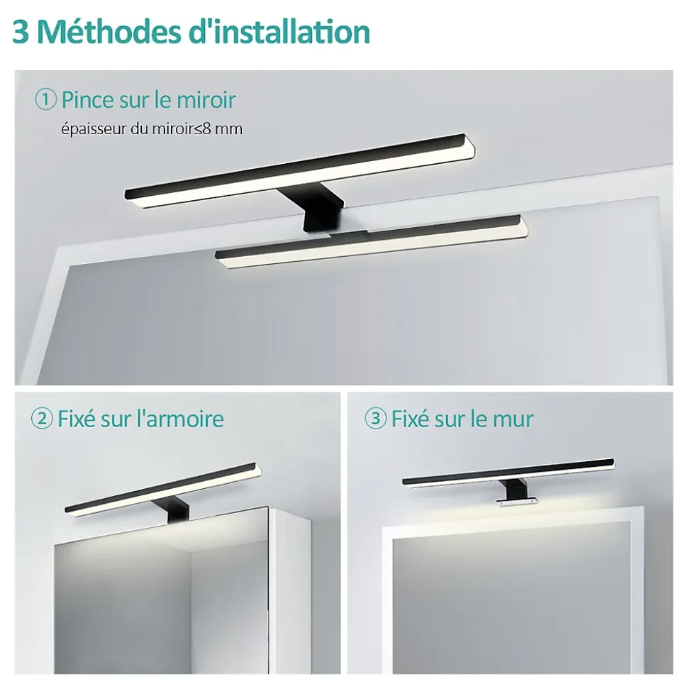 Offrez à votre salle de bain un éclairage à la fois fonctionnel et esthétique avec les appliques murales LED EMKE. Conçues pour diffuser une lumière agréable et sans éblouissement, elles améliorent la visibilité et créent une ambiance raffinée. Faciles à installer et conçues avec des matériaux de qualité, elles sont idéales pour un usage quotidien et durable.1. Large compatibilité de tension : fonctionne en douceur avec une plage de tension de 85-260 V, garantissant des performances fiables dans divers paramètres.2. Trois options d’installation : fixez la lampe de miroir à votre miroir (convient aux miroirs d’une épaisseur de ≤ 8 mm), fixez-la à votre armoire à miroir ou montez-la directement sur le mur.3. Interrupteur d’éclairage de miroir : la lampe de miroir est connectée directement au câble et peut être utilisée avec un interrupteur mural dans votre maison (remarque : lampe de miroir sans interrupteur), 8 W | 4200 K, peut également être utilisée comme éclairage supplémentaire.4. Économie d’énergie : cette lampe de miroir offre une excellente efficacité énergétique tout en s’intégrant harmonieusement à divers styles de décoration grâce à son design épuré et moderne.5. Fiable : nous vous proposons des services de haute qualité pour vous assurer une expérience d’achat fluide. Si vous rencontrez des problèmes, n’hésitez pas à nous contacter à tout moment pour obtenir de l’aide après-vente.