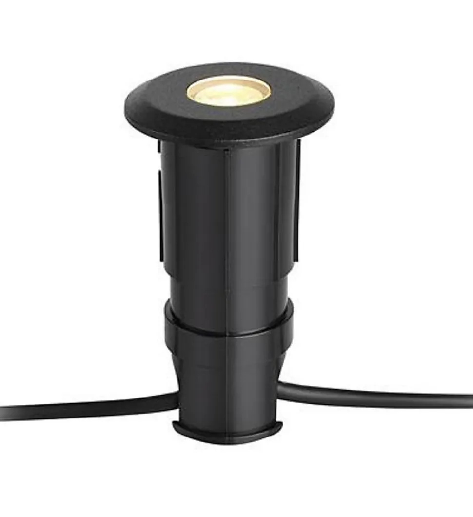 Les caractéristiques techniquesCet encastré de balisage étanche se connecte à votre installation de la gamme Garden24.Il répond aux normes d’étanchéité permettant son installation en extérieur (IP44). De plus son alimentation basse tension à relier à un transformateur (transformateur 60W ref 106925 ou 36W ref 106924) vous permet de l’installer à proximité de pièces d’eau ou de votre piscine en conformité avec les normes de sécurité en vigueur. Les avantages esthétiquesLe concept Garden24 créé par la marque suédoise Mark Slöjd, est un concept original et complet vous permettant d’éclairer vos extérieurs en toute sécurité.Ce magnifique encastré vous permettra de baliser allées, passages, terrasse, abords de piscine etc.Cet encastré de balisage Led 0,8 watts diffuse une agréable lumière blanc chaud.Son esthétique sobre lui permet de s’harmoniser avec tout type de décoration extérieure. Il existe en version 3 watts, 150 lumens, pour une lumière plus intense (ref 107285).Contactez-nous avec vos plans et vos souhaits, nous vous assurerons une assistance technique pour l’implantation de vos luminaires.