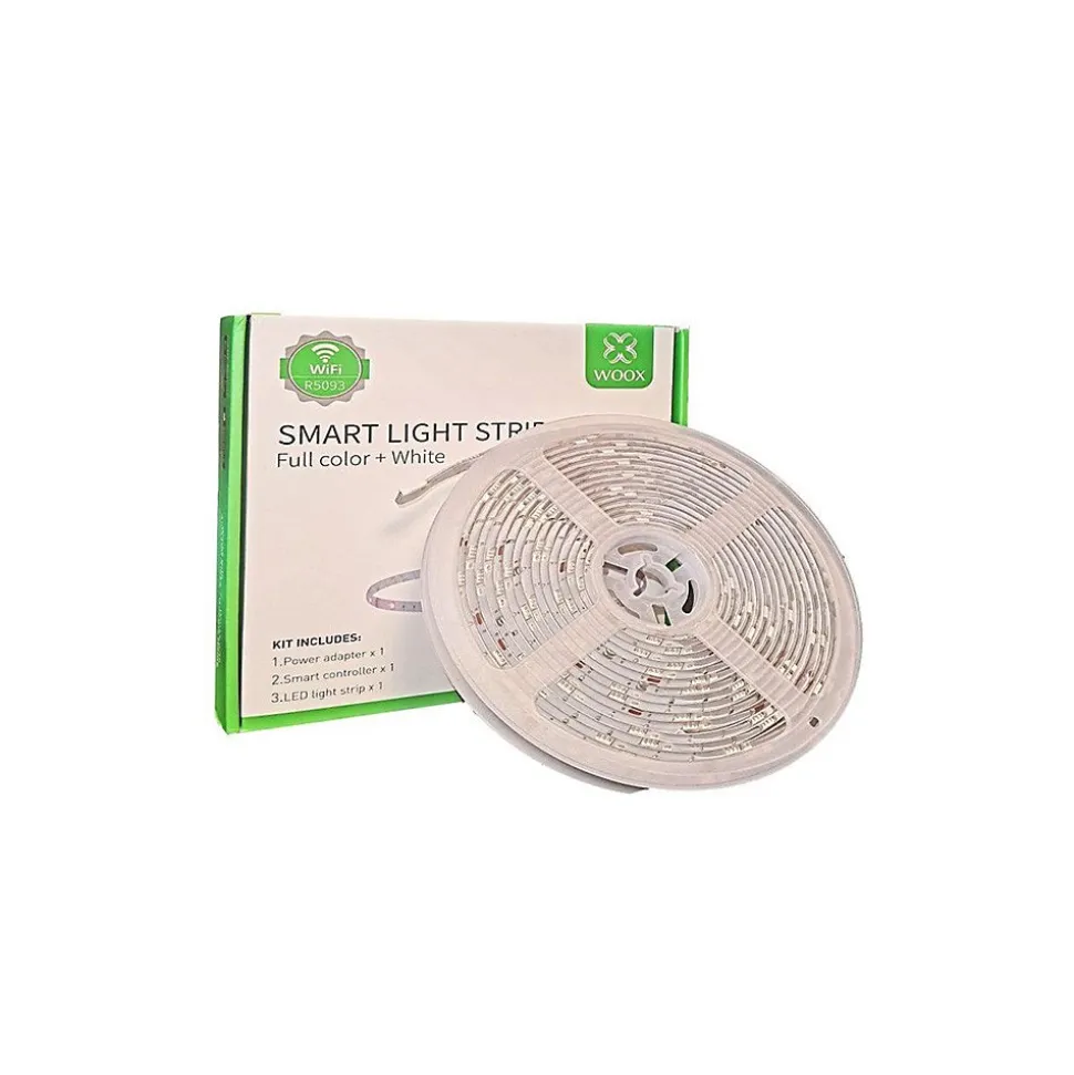 Ensemble de bandes d’éclairage à DEL – R5093 – WOOXLa bande LED R5093 peut diffuser plus de 16 millions de couleurs de lumières différentes. L’utilisateur peut alors adapter l’éclairage selon ses goûts et l’ambiance voulue.Cet accessoire est compatible avec l’application Woox Home, disponible sur Android et iOS. L’application permet de contrôler la bande à distance à l’aide d’un smartphone ou d’une tablette. Cet outil permet de régler les couleurs, l’intensité de la luminosité ou encore de programmer des horaires pour allumer ou éteindre le matériel.Cette bande lumineuse LED de 5 mètres de long fonctionne avec Amazon Alexa et Google Assistant. Cet accessoire a besoin d’un routeur Wi-Fi 2,4 GHz, mais fonctionne sans hub séparé, ni service d’abonnement payant. Le modèle R5093 peut être commandée de n’importe où.Ce luminaire est certifié IP65 et est donc compatible pour une utilisation en extérieur. Cette norme (Ingress Protection) est un standard international établi par la Commission électrotechnique internationale déterminant l’étanchéité du kit. Le 6 indique donc que le matériel est protégé contre les intrusions de poussière. Le 5 en unité garantit qu’il ne craint pas l’eau. Par ailleurs, ce matériel peut fonctionner environ 30 000 heures.Caractéristiques principales :Compatible avec l’application Woox Home, contrôlable à distance avec un smartphone ou une tabletteCompatible avec Amazon et Google AssistantLongueur : 5 mètresTempérature de fonctionnement : -25℃ ~ 60℃Protection : IP65Entrée adaptateur : AC100-240 V / Sortie adaptateur : DC 12 V/2 A