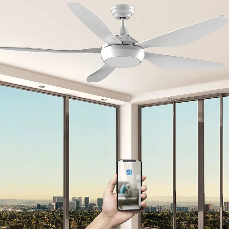 BRASSEUR D’AIR 137 CM ABACOMoteur à courant continu, très économique en énergie, très silencieuxTrès fort débit d’air6 vitesses de fonctionnementTélécommande avec support muralTélécommande programmable sur plusieurs ventilateursLumière LED 20W 3 couleurs dimmables (6000°K / 4000°K / 3000°K)Compatible Wifi (APP Smart Life)Compatible contrôles vocaux (Amazon Alexa et Google Home)Fonction mémoire Marche/Arrêt (gestion par interrupteur…)Fonction minuterie (8h max)Mode été/hiver (inversion du sens de rotation des pales)5 pales plastiques ABS blanchesTubes 13 et 25 cm (rallonges 90 ou 120 cm en option pour plafond haut)Installation sur plafond incliné jusqu’à 25°Connecteurs de fils, connexions simplifiées, installation facileIdéal pour maison, bureau, magasin, hôtel, restaurant…Tension100-240 V~Fréquence50/60 HzMoteurDC courant continuDiamètre137 cmNombre de vitesses6Consommation6 W (vit. 1) – 35 W (vit. 6)Eclairage LED20 W dimmable 3 couleursLumens2000 lm (6000°K) / 1900 lm (4000°K) / 1820 lm (3000°K)Rotation102 tr/min (vit. 1) – 211 tr/min (vit. 6)Niveau sonore27 dB (vit. 1) – 45 dB (vit. 6)Débit d’air6 106 m3/h (vit. 1) – 15 000 m3/h (vit. 6)Efficacité énergétique1 035 m3/h.W (vit. 1) – 435 m3/h.W (vit. 6)Pales et inclinaison5 pales plastiques blanches – 12°Hauteurs avec tube 13 cmPlafond / Pales : 29 cm – Plafond / Point bas : 35 cmHauteurs avec tube 25 cmPlafond / Pales : 41 cm – Plafond / Point bas : 47 cm