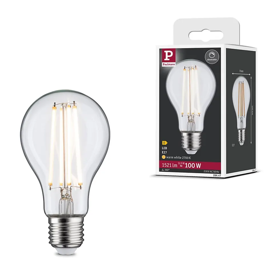La lampe tous usages à filaments d’une puissance de 12,5 watts diffuse sa lumière dans toutes les directions. Éclaire de façon uniforme même les plus grands abat-jour. Elle a une température de couleur blanc chaud agréable et est compatible avec les douilles E27 conventionnelles. Les lampes LED Paulmann portant le label Eye friendly produisent une lumière confortable qui préserve les yeux. Que ce soit pour travailler, lire ou se détendre, les lampes contribuent à un meilleur confort visuel.