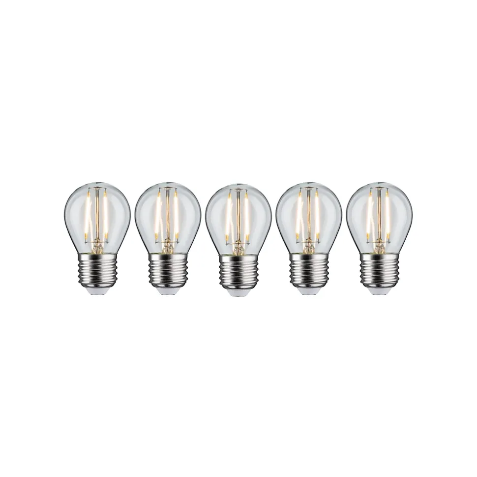 Le kit d’ampoules comprend 5 ampoules sphériques à filament. Les ampoules à filament diffusent la lumière dans toutes les directions. Éclaire de façon uniforme même les plus grands abat-jour. Elles ont une température de couleur blanc chaud agréable.