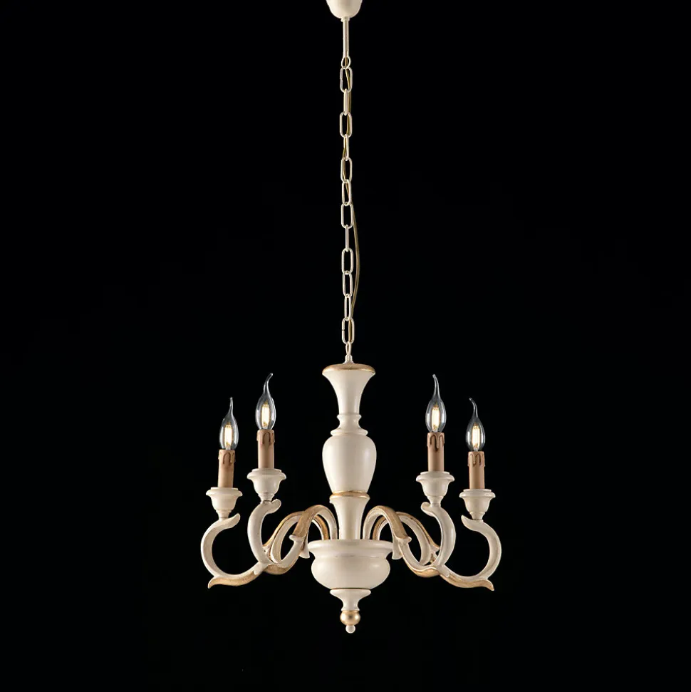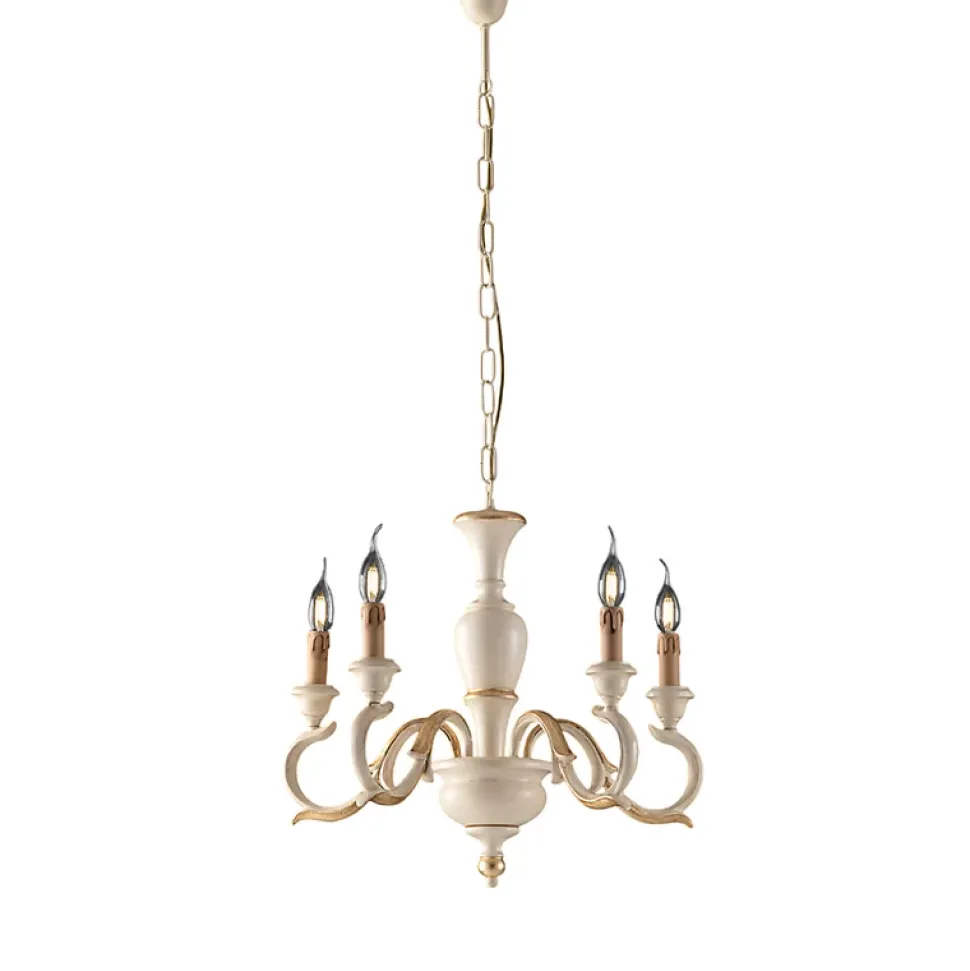 Fiorenza – Lustre en bois ivoire et feuille d’or, 5 lumièresMesures du produit : H.50 – MAX 110 – Ø50Nombre d’ampoules : 5xE14Puissance : 42 watts maximumFinition : Ivoire / Feuille d’orCe produit est fabriqué artisanalement. De légères imperfections visuelles sont considérées comme des caractéristiques naturelles du travail manuel