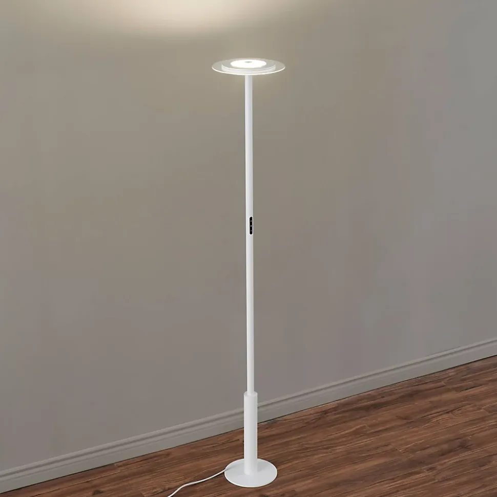 Lelia est un lampadaire de bureau blanc LED à la fois esthétique et performant, conçu pour accompagner les environnements de travail modernes. D’une hauteur de 190 cm, il combine finesse et fonctionnalité grâce à sa structure en aluminium et à son éclairage LED intégré. La lumière douce et homogène peut être modulée grâce à la fonction dimmable, offrant un confort visuel optimal. Sa base stable et son allure épurée s’intègrent discrètement dans tous les intérieurs professionnels.) Assemblage simple requis (