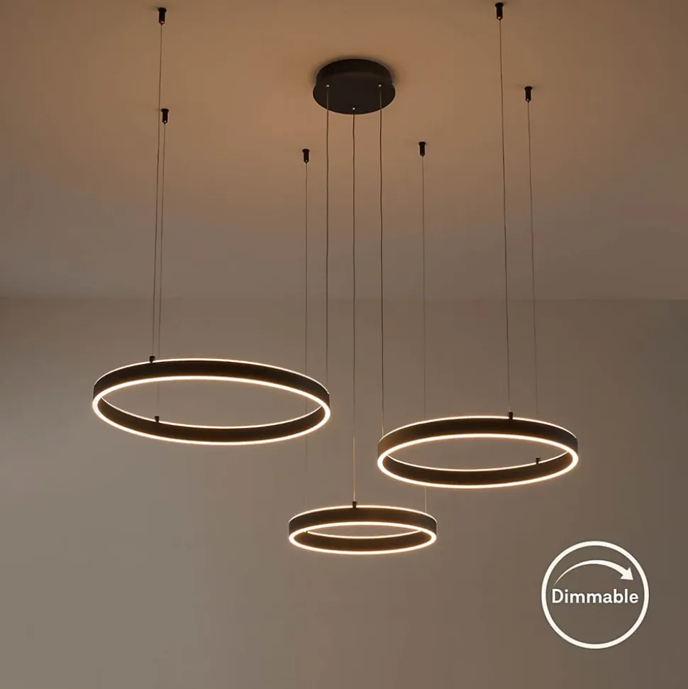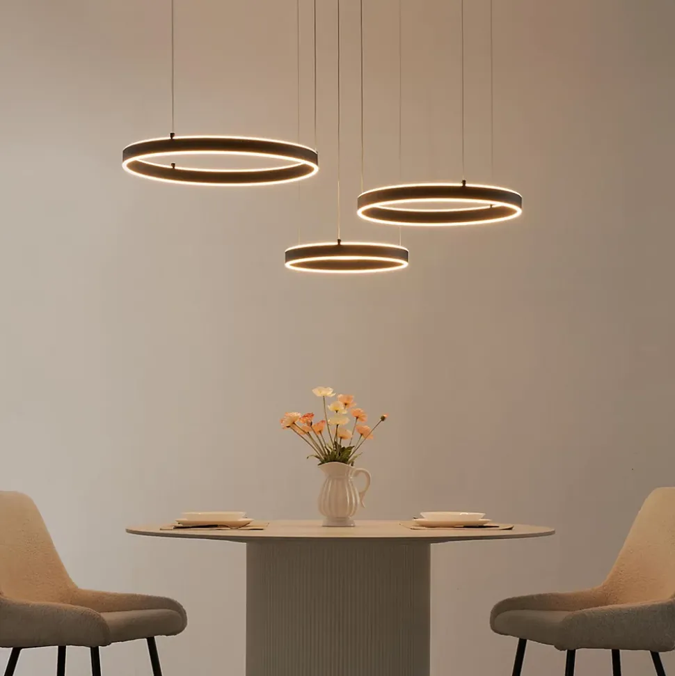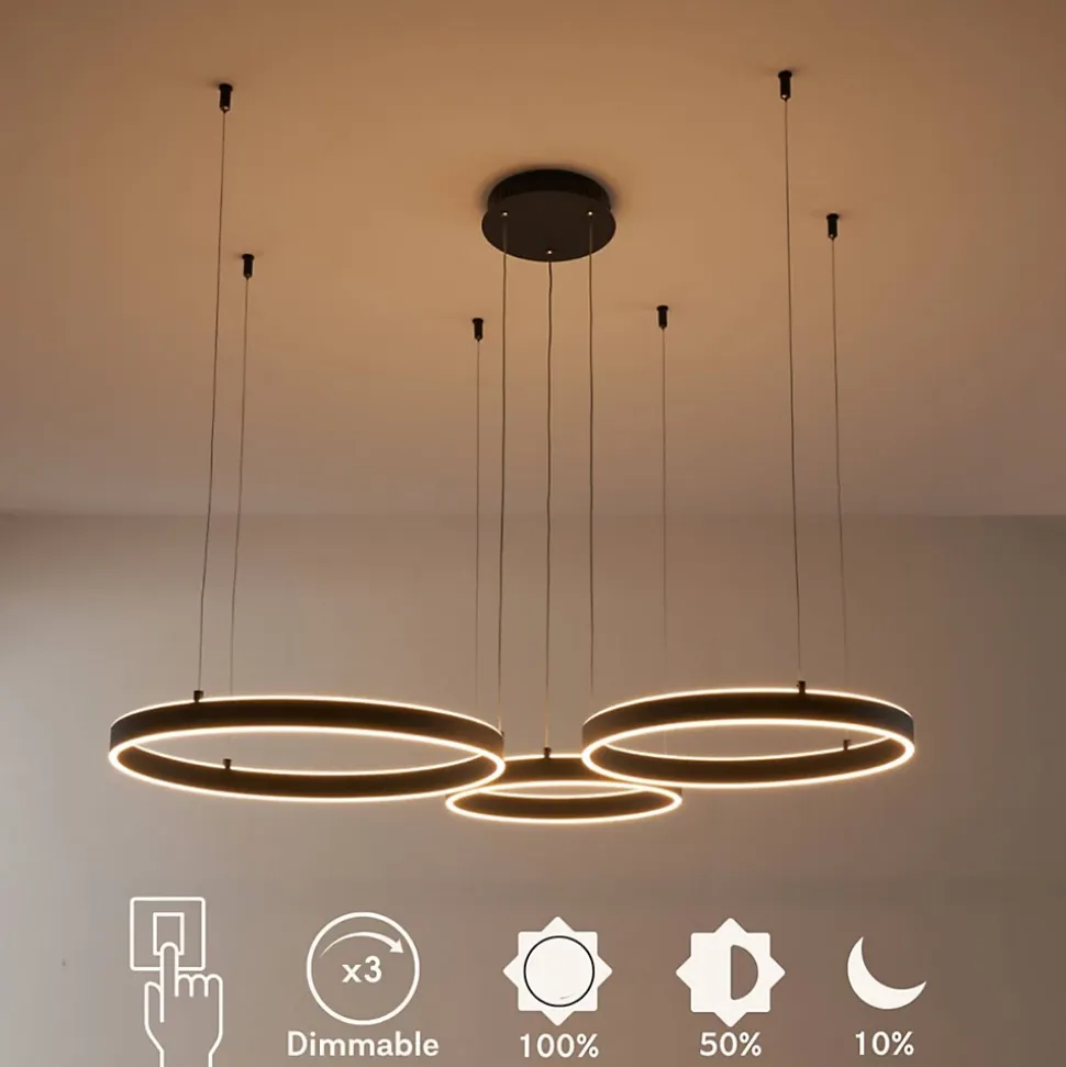 Laissez Blisko illuminer votre espace avec ses trois cercles lumineux LED intégrés (54W). Ce grand lustre émet une lumière envoûtante qui mettra en valeur chaque coin de la pièce. Son design moderne et audacieux en fait un élément central remarquable de votre décoration intérieure. Blisko est compatible avec un variateur de luminosité de plus il est possible de régler la hauteur des câbles.) Livré monté, prêt à installer (