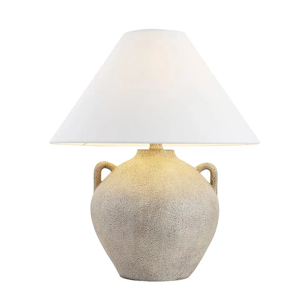 Dimensions (L x P x H) : 43 x 43 x 50 cmDesign modernePied robusteLumière agréableFacile à utiliserMatériaux de haute qualitéLa grande lampe de table RITA allie une esthétique naturelle à un design moderne et crée une atmosphère chaleureuse et conviviale dans ton intérieur.Le pied robuste à l’aspect rustique de la pierre confère à la lampe une note authentique et terreuse, tandis que l’abat-jour en tissu blanc diffuse une lumière douce et non éblouissante. Grâce à la combinaison harmonieuse de couleurs naturelles et de matériaux de qualité, RITA apporte une touche de style et s’intègre parfaitement dans différents styles d’intérieur – que ce soit comme éclairage décoratif dans le salon, comme lampe de table élégante sur la commode ou comme lampe de chevet confortable dans la chambre à coucher.Grâce à sa finition solide, RITA ne convainc pas seulement par son aspect visuel, mais aussi par sa longévité et sa stabilité. Détails du produit:Grande lampe de table au charme rustiquePied en pierre artificielle à l’aspect rustique de la pierre pour un rayonnement naturelAbat-jour en tissu blanc pour une lumière agréable et non éblouissanteUtilisation polyvalente idéale pour le salon, la chambre à coucher & plus encoreFinition robuste pour la stabilité et la longévité Données techniques:Dimensions (L x P x H) : 43 x 43 x 50 cmAmpoule nécessaire : E27Couleur du câble : TransparentCouleur de l’abat-jour : BlancCouleur du pied : Aspect pierreMatériau abat-jour : TissuMatériau du pied : Pierre artificielleType d’interrupteur : Interrupteur à basculePoids : env. 2,30 kgLongueur du câble : 180 cm
