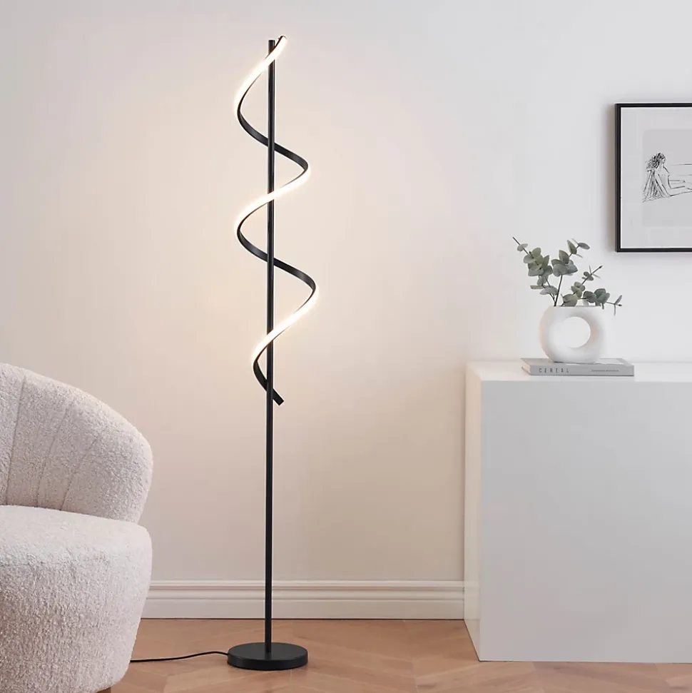 Avec sa bande LED qui danse autour de son pied, Simaria est une lampe au design captivant qui offre un éclairage puissant de 29W. Parfaite pour les espaces sans source lumineuse au plafond, elle apporte une touche moderne et aérienne à votre décoration. Fabriquée en aluminium avec une finition noire sophistiquée, Simaria mesure 155 cm de hauteur et 20 cm de diamètre. Sa base lestée garantit une stabilité optimale. Si vous préférez une touche de doré, optez pour la version dorée de Simaria.) Assemblage simple requis (