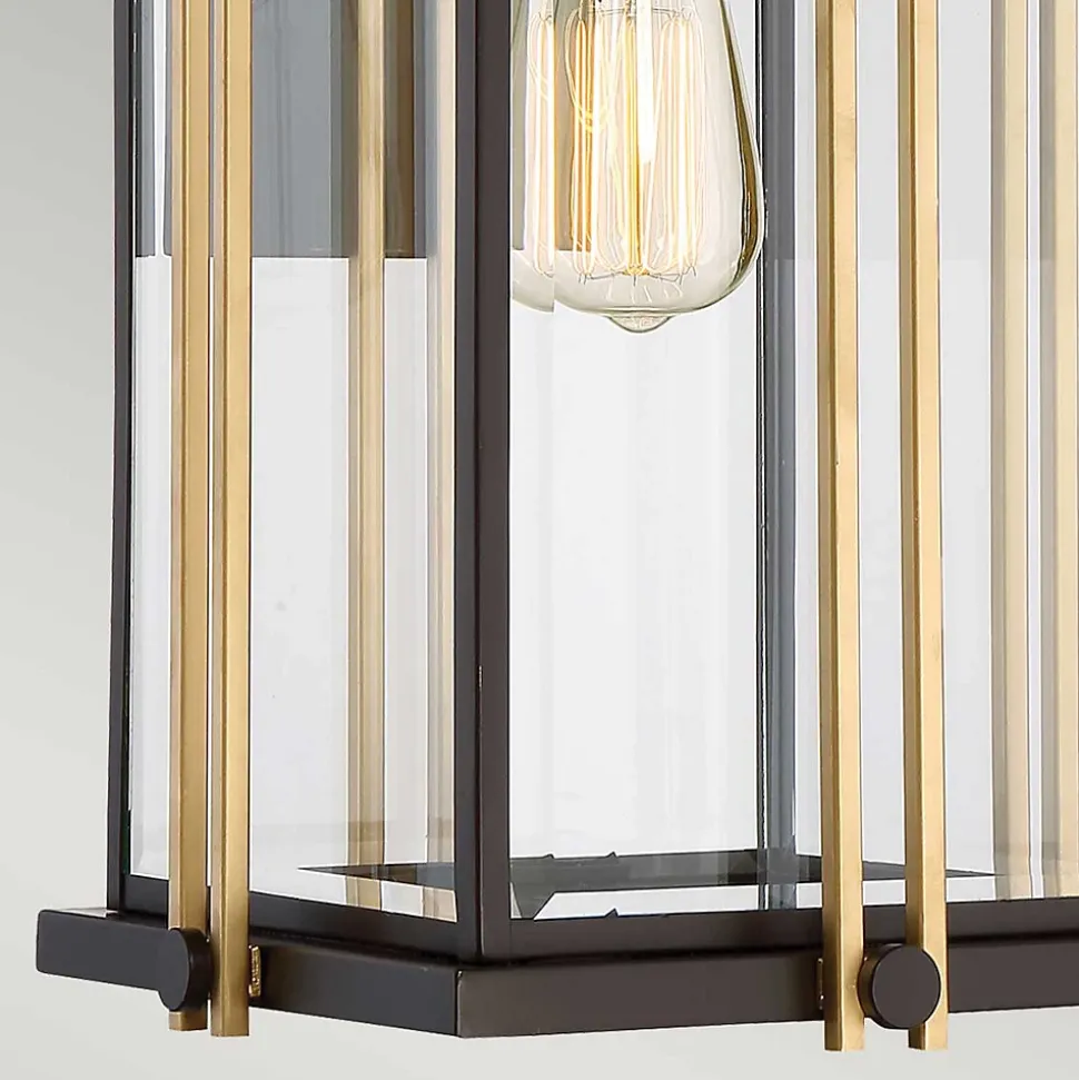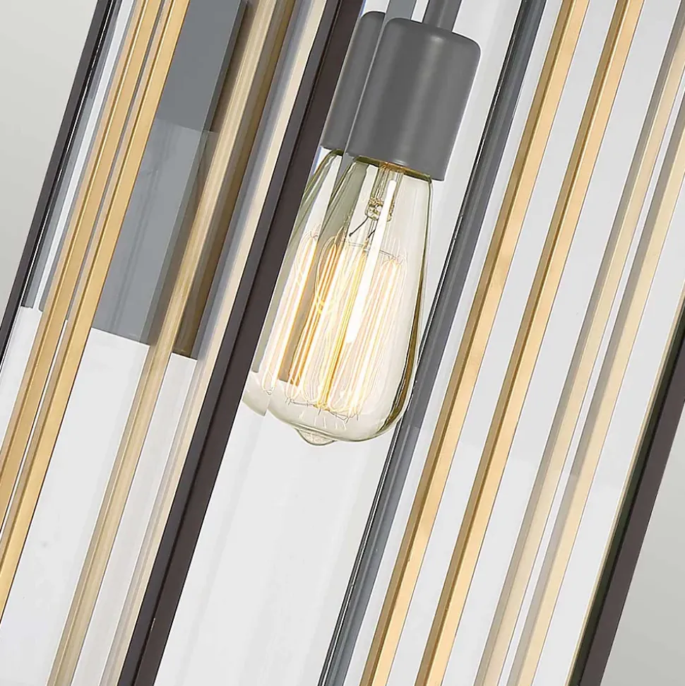 Du milieu du siècle à la maison d’aujourd’hui, la série Goldenrod pour l’extérieur est à la fois intrigante et classique. La riche finition bronze occidental de la base est accentuée par des bandes de métal peintes en or lustré. Les panneaux de verre clair biseautés s’inscrivent dans le cadre du décor général. Veuillez noter que les tiges dorées peuvent être retirées pour simplifier le design, ou recolorées par l’utilisateur final pour créer d’autres looks.