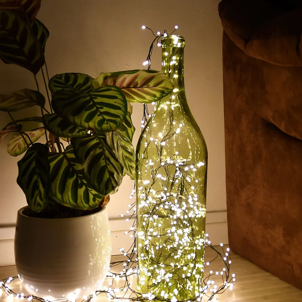 Idéale en DIY autour d’un cadre, d’une échelle ou encore dans un vase, laissez parler votre créativité ! Sa grande longueur et sa luminosité réveilleront vos soirées.• Couleur de la lumière : Ivoire• Nombre de LED : 480• Dimensions : L6m• Puissance : transformateur 230 V/20W• Alimentation : Filaire• Couleur du câble : vert• Matière : Produit en PVC souple câble sécurisé par un revêtement.• Connectable : non• Garantie : 2 ans Usage et installation : Cette jolie guirlande trouvera sa place partout. Son câble discret et ses mircoLED habilleront murs, ciel de lit, vases, arbres. Décorez avec finesse et élégance.Données techniques et dimensions : Dotée de l’indice de protection IP44, votre guirlande résistera à toutes les météos. Simple d’utilisation, il vous suffit de la brancher à une prise secteur. Source lumineuse : Cette guirlande est composée de 480 MicroLED nouvelles générations est trois fois plus lumineuses qu’une LED classique.Option: Cette guirlande existe en 2.5m câble argent.