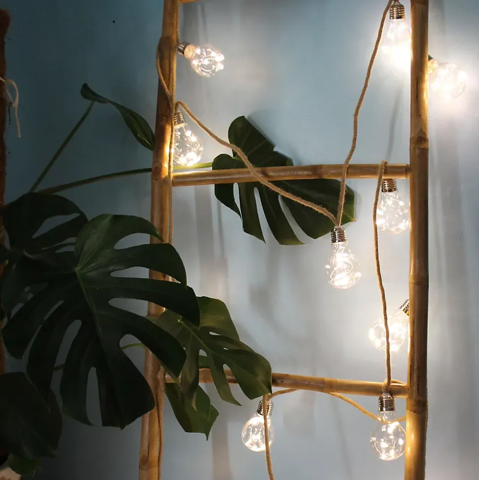 Lors de vos soirées d’été, elle invite aux repas champêtres à l’ombre d’un kiosque ou d’une tonnelle. Idéale en ciel de lit pour un esprit bobo chic, son esprit rétro et sa lumière douce réveilleront votre intérieur. • Couleur de la lumière : Ivoire• Nombre d’ampoules : 15 ampoules de 6 microLED• Luminosité : 180 lumens• Dimensions : L 5,6m, 40 cm entre chaque forme d’ampoule• Puissance : 230V/3,5W• Alimentation : Filaire• Matière : Produit en câble PVC souple recouvert en fibre de jute • Garantie : 2 ans Usage et installation : Cette guirlande trouvera sa place aussi bien dans une chambre, un salon, dans un sapin que sous votre tonnelle (sous abri). Sa corde en fibre de jute donnera un effet naturel et tendance à votre espace. Données techniques et dimensions : Simple d’utilisation, il vous suffit de brancher à une prise secteur grâce au câble de 2m inclus, longueur globale : L:7,60m. Source lumineuse : La guirlande est équipée de 90 micoLED nouvelle génération, 3 fois plus lumineuses qu’une LED classique. Option : Cette guirlande existe également avec 10 ampoules.