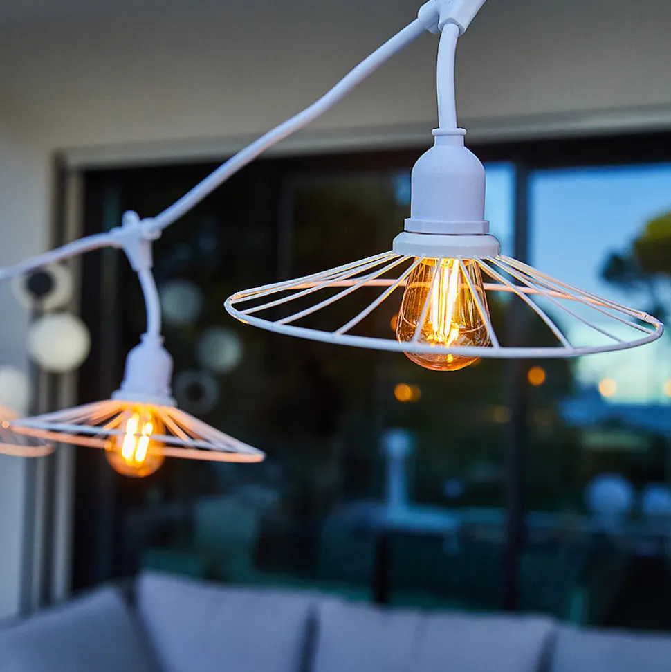 La guirlande LED Chic Light White Connectable allie un design épuré et intemporel a une grande extensibilite. De sa longueur de 6 mètres, elle dispose de 10 globes blancs décoratifs offrant un rendu élégant. Sa fonction raccordable est un atout majeur, permettant de relier plusieurs guirlandes sur une seule prise secteur pour couvrir de très grandes surfaces. Avec une intensite efficace de 1000 lumens, elle diffuse une lumiere blanc chaud idéale pour créer une ambiance romantique et chaleureuse. Sa protection IP44 contre les éclaboussures et sa résistance aux UV garantissent un usage durable en intérieur comme en extérieur, que ce soit pour une terrasse, un jardin ou un salon. La mise en fonction est simple via un branchement secteur classique. l’installation est facilitée par un espacement de 40 cm entre les globes et un cable de 2 mètres avant la première source. Ce luminaire apporte une touche décorative originale et moderne tout en offrant une modularité pratique et performante.