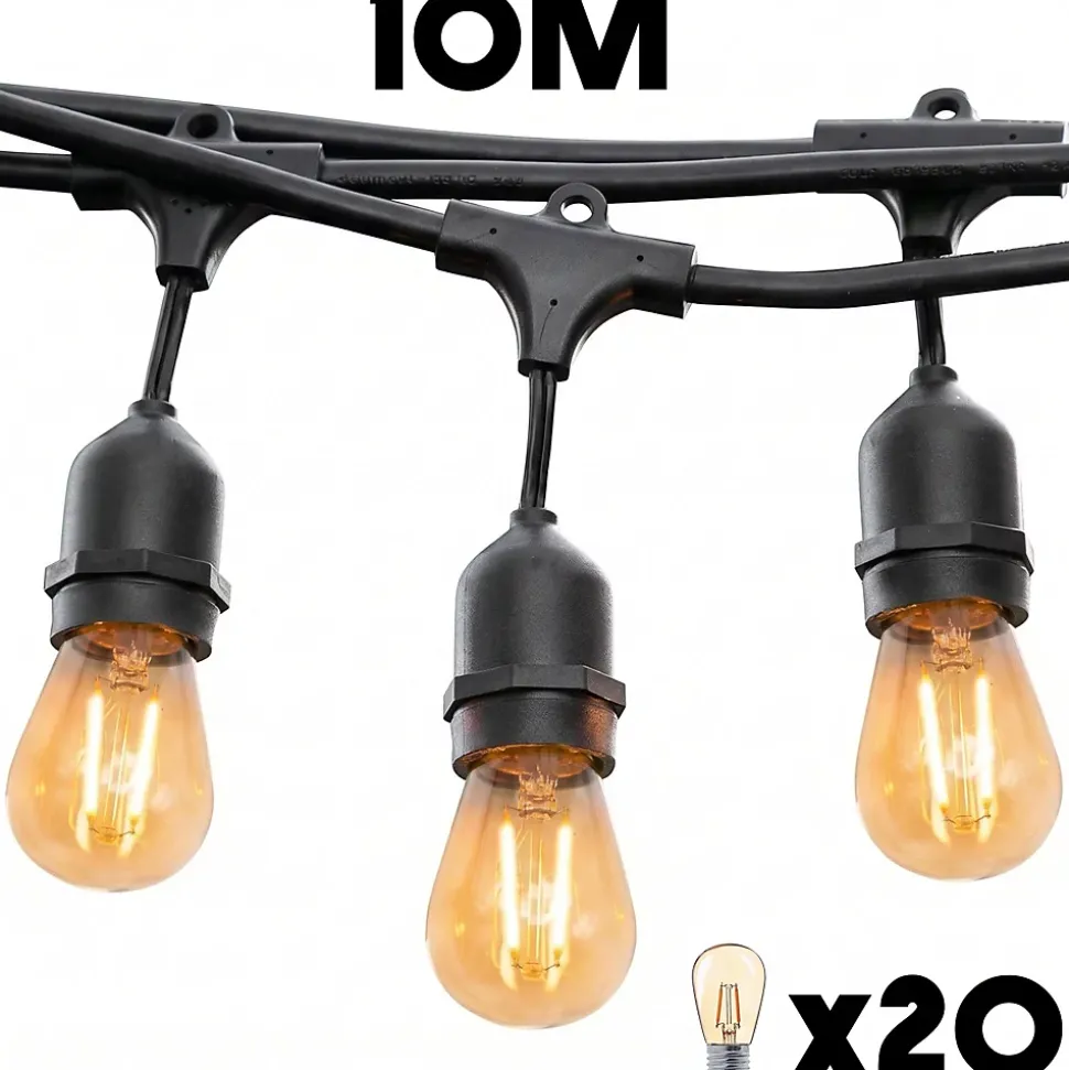 Ce kit de 2 guirlandes MAFY LIGHT CONNECTABLE offre une solution d’éclairage extensible de 12 mètres au design épuré. Il comprend 20 ampoules LED blanc chaud interchangeables sur culot E27, degageant une intensite totale puissante de 2000 Lumens. Son atout majeur est sa fonction raccordable, permettant de connecter plusieurs kits sur une seule prise secteur pour couvrir de très grandes surfaces sans multiplier les branchements. Concue pour l’intérieur comme l extérieur, cette solution beneficie d’une protection IP44 contre les éclaboussures et d’une résistance aux UV. l’installation est simplifiee par un espacement de 40 cm entre chaque ampoule et un cable d’alimentation de 2 mètres avant la première douille. Polyvalent et tendance, ce kit est idéal pour créer une ambiance conviviale lors de grands événements ou pour sublimer durablement une terrasse. Il combine performance moderne, robustesse et simplicite pour transformer vos espaces avec une lumiere chaleureuse.