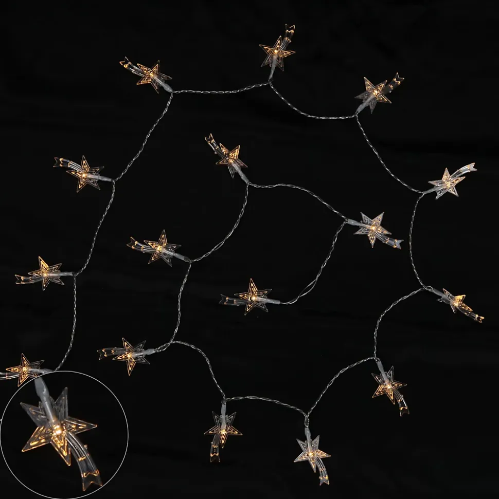 Ajoutez une ambiance chaleureuse et féerique à votre décoration avec cette guirlande 40 étoiles filantes en LED blanc chaud, parfaite pour l’intérieur comme pour l’extérieur abrité. L’effet étoilé en lumière jaune doux apporte une atmosphère cosy, idéale pour Noël, une chambre ou un décor lumineux permanent. ✨ Caractéristiques 40 LED blanc chaud (jaune) Forme : étoiles filantes translucides Longueur totale : 5 mètres Transformateur inclus – basse tension Couleur du fil : transparent Utilisation : intérieur – extérieur abrité (selon IP du transfo) Composition : plastique & métal