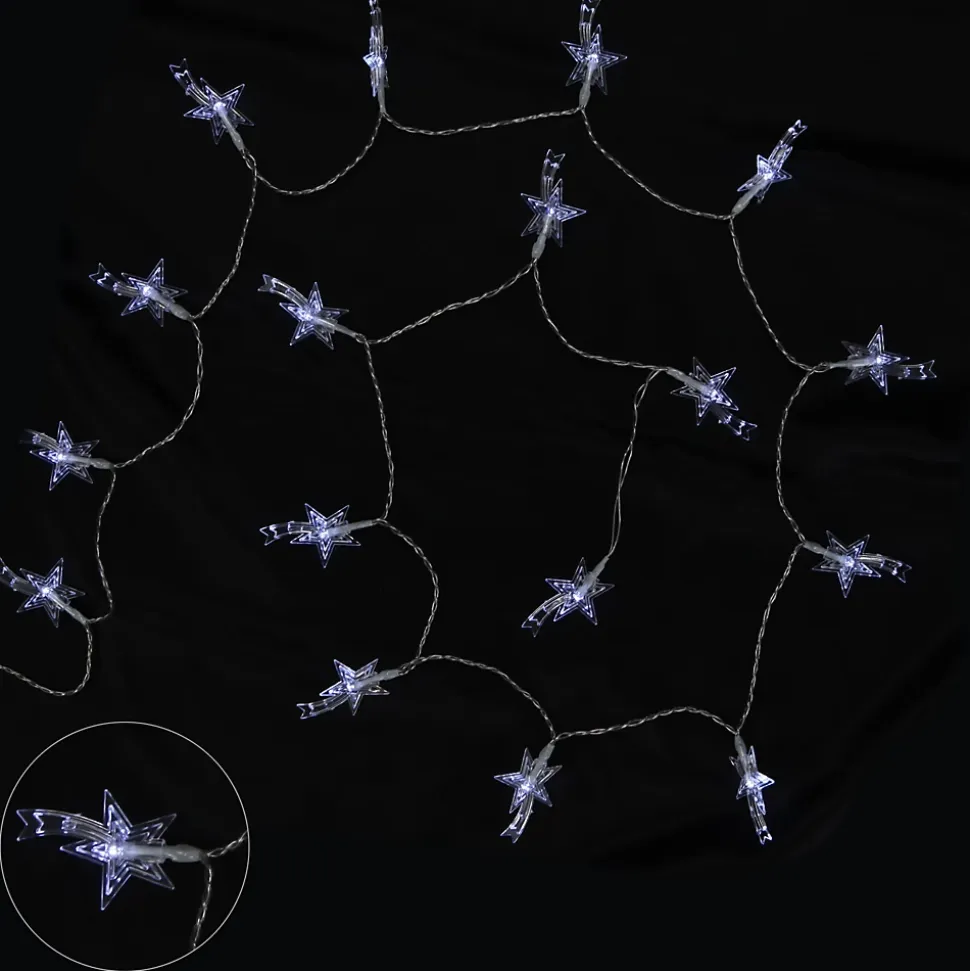 Créez une ambiance féerique grâce à cette jolie guirlande 40 étoiles filantes lumineuses, parfaite pour l’intérieur comme pour l’extérieur abrité. Elle diffuse une lumière blanche froide moderne et éclatante, idéale pour décorer fenêtres, murs, sapins, chambres ou vitrines. ✨ Caractéristiques 40 LED blanc froid Forme : étoiles filantes translucides Longueur : 5 mètres Transformateur inclus – basse tension Couleur du fil : transparent Utilisation : intérieur – extérieur abrité (selon IP du transfo) Composition : plastique & métal