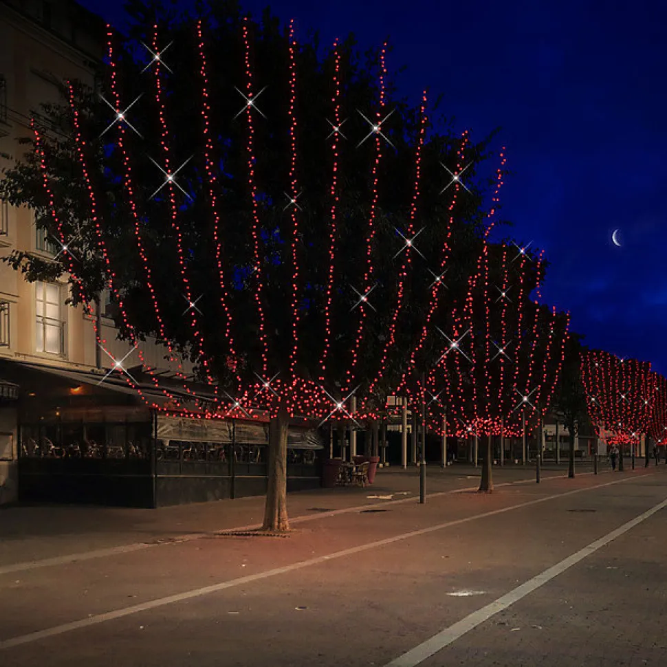 Notre guirlande est parfaite pour faire briller votre maison ou vos occasions spéciales. C’est un indispensable pour illuminer vos arbres et couvrir vos extérieurs de lumière. Sa qualité professionnelle lui permet un usage autant domestique que public. Elle peut s’utiliser aussi bien à l’extérieur qu’à l’intérieur. Raccordez jusqu’à 100m de lumière sur un câble d’alimentation.• Nb de LED : 120 LED• Couleur de LED : Rouge• Couleur du câble : Blanc• Animation : Fixe• Dimensions : L12m• Puissance : 9W• Tension : 230V• Lumens : 288 lumens• Alimentation : filaire, alimentation incluse.• Prolongeable : jusqu’à 96m – 8 produits maximum• Connecteur B• Matière : Caoutchouc• Usage : Intérieur/Extérieur IP44• Qualité professionnelle• Garantie : 2 ansUsage & installation :De qualité professionnelle, cette guirlande peut être utiliser aussi bien à l’intérieur qu’à l’extérieur. L’indice IP 44, vous garantit une utilisation extérieure quelle que soit la météo tout au long de l’année.Données techniques & dimensions :Cette guirlande de 12m est prolonge able jusqu’à 100m, vous pourrez éclairer une grande surface. Elle est vendue avec son câble d’alimentation. Elle est compatible avec nos connecteurs B Plug & Light 230V. Si vous souhiatez la prolonger avec une guirlande scintillante il faut utiliser un câble d’alimentation redressé.Source lumineuse :La guirlande est composée de 120 LED fixe réparties sur 12m de longeur.
