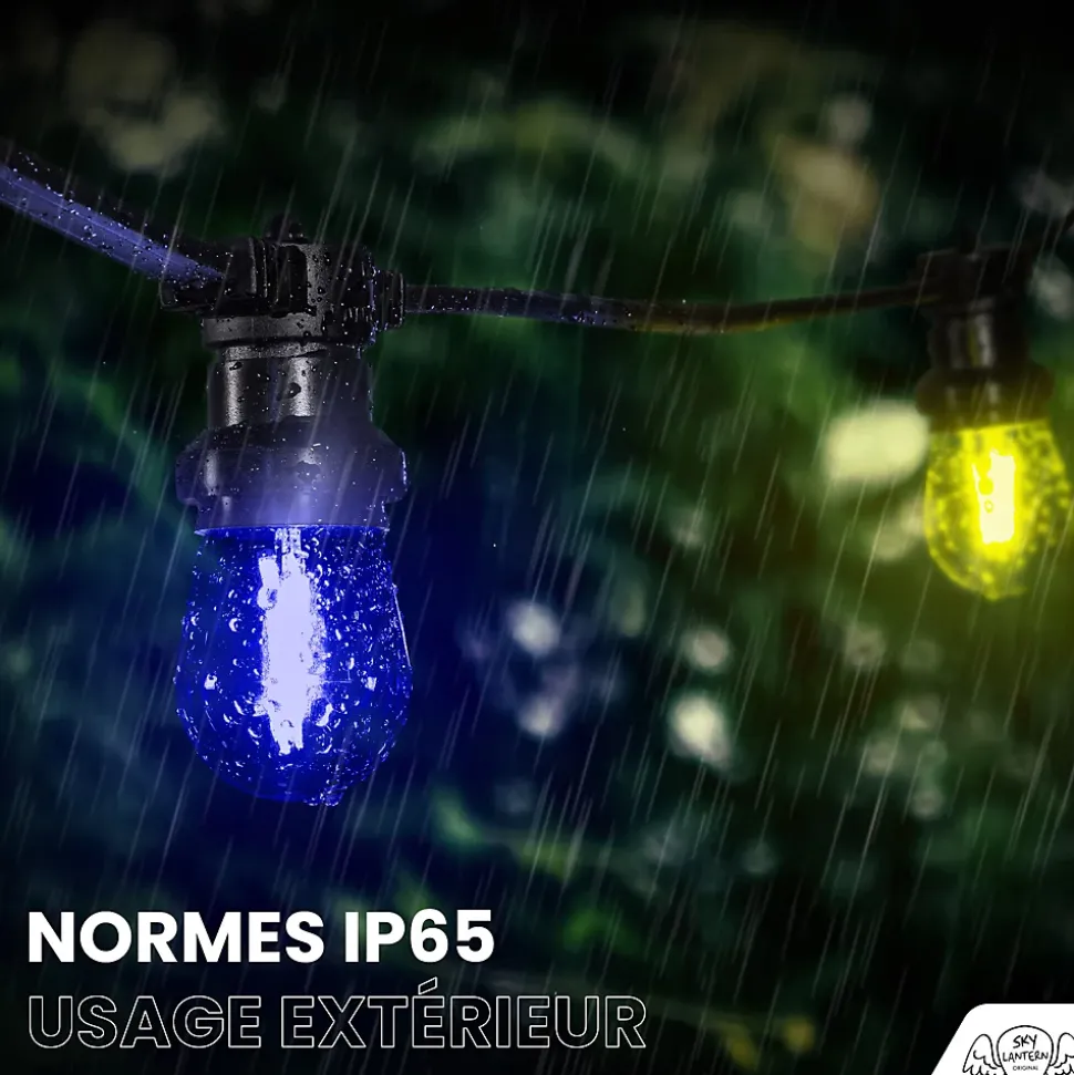- ☔ ETANCHE IP65: Notre guirlande est étanche et répond aux normes IP65 ! Elle résiste à l’eau et à la poussière. Votre guirlande peut passer l’hiver dehors sans aucuns soucis !
